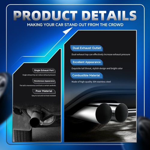 Anti-deformation & rustproof: built from high-strength stainless steel, our exhaust tips perfectly decorate your tailpipe system with polish stainless surface; effectively anti-corrosive, avoid rust and deformation for enhanced durability