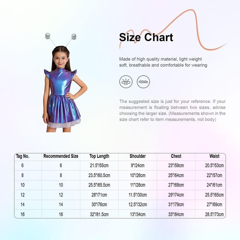Set Include: 1Pc Alien Dress, 1Pc Hair Hoop