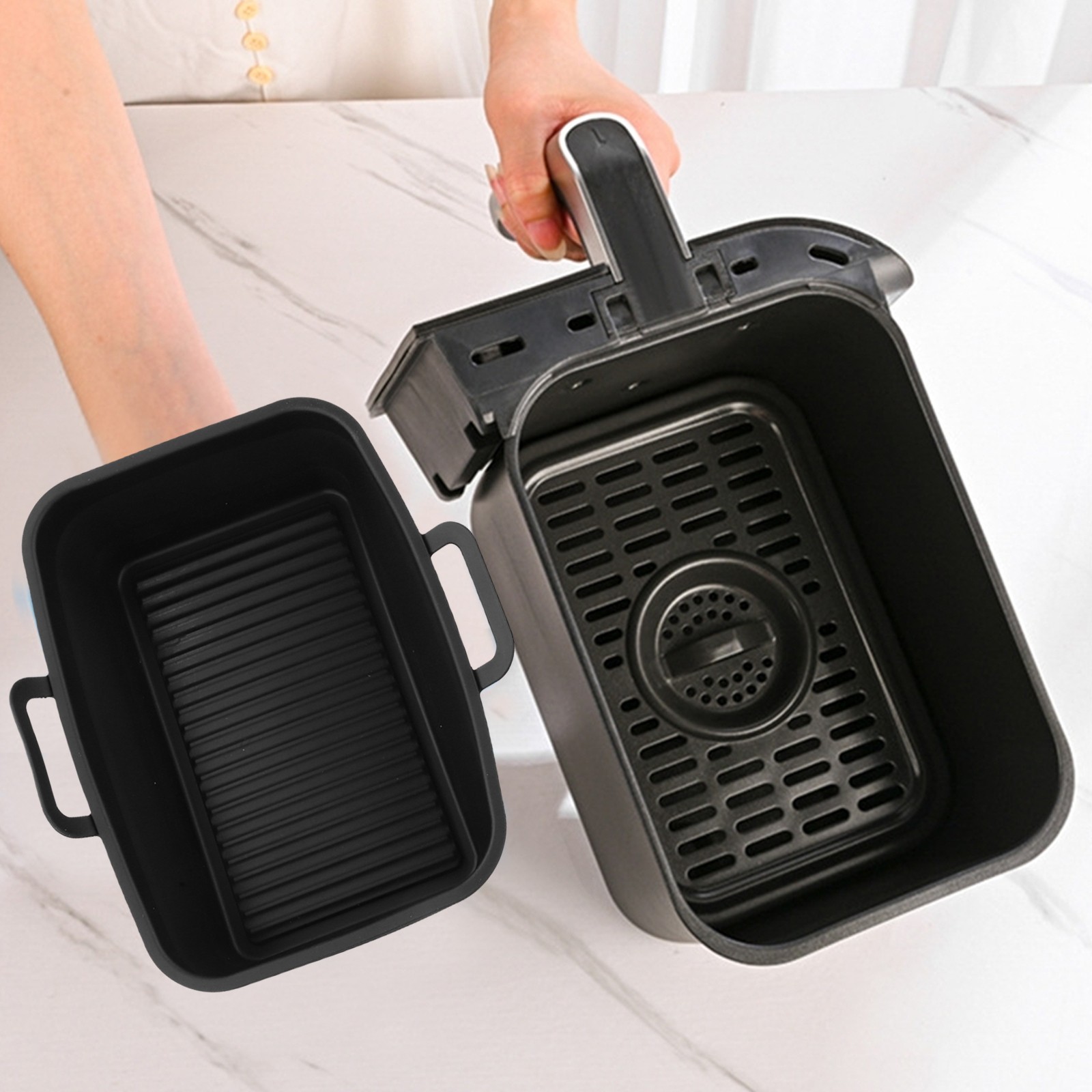 * Réutilisable : fabriqué à partir de silicone de haute qualité, cette doublure de panier de friteuse à air est conçue pour résister à une utilisation répétée, ce qui en fait une alternative aux doublures jetables tout en offrant des performances durables dans votre cuisine.