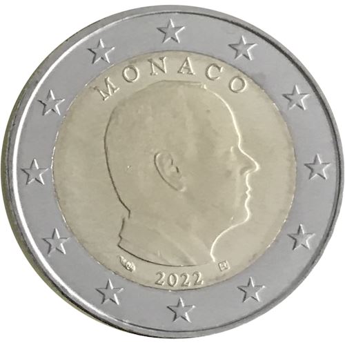 Euro im Umlauf mit Porträt von Prinz Albert II. Jahr 2022.