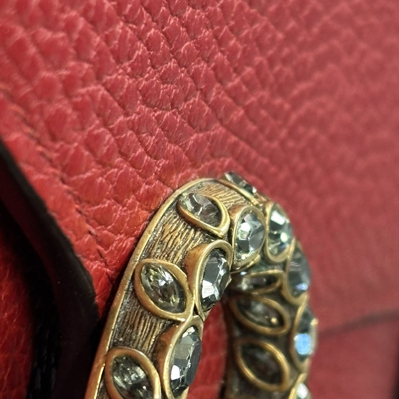 | Condition Details | Outer ⇒ Some Rubbed Metal ⇒ Stain, Rubbed, Scratches Flap ⇒ Some rhinestones are missing and there are metal marks Opening and closing mouth ⇒ Slight stain Inner⇒Stain |