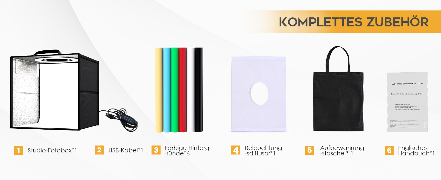 - 【6 farbige Hintergründe】Diese tragbare Lichtbox wird mit 6 farbigen Fotografie-Hintergründen geliefert, die es Ihnen ermöglichen, Ihren Hintergrund an den einzigartigen Stil Ihres Produkts anzupassen. Sie werden in der Lage sein, kreative und einzigartige Fotos aufzunehmen, die sich von den anderen abheben.