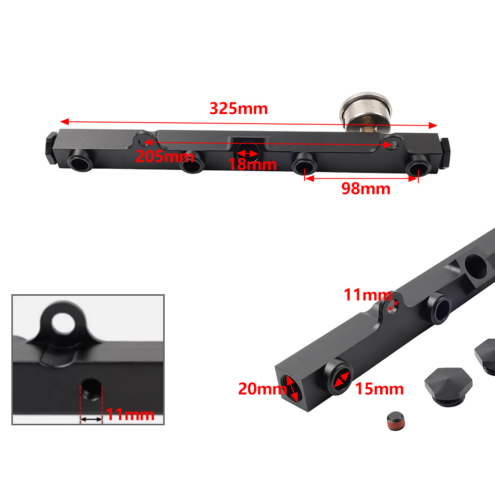 2. The rail includes a 1/8" NPT hole that allow you to mount a fuel pressure gauge directly to your fuel rail. This puts the fuel pressure gauge in a spot that's easily visible, so you don't have to poke around in the engine bay just to see if you have fuel pressure.