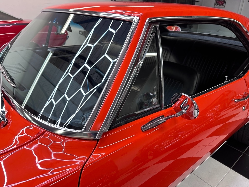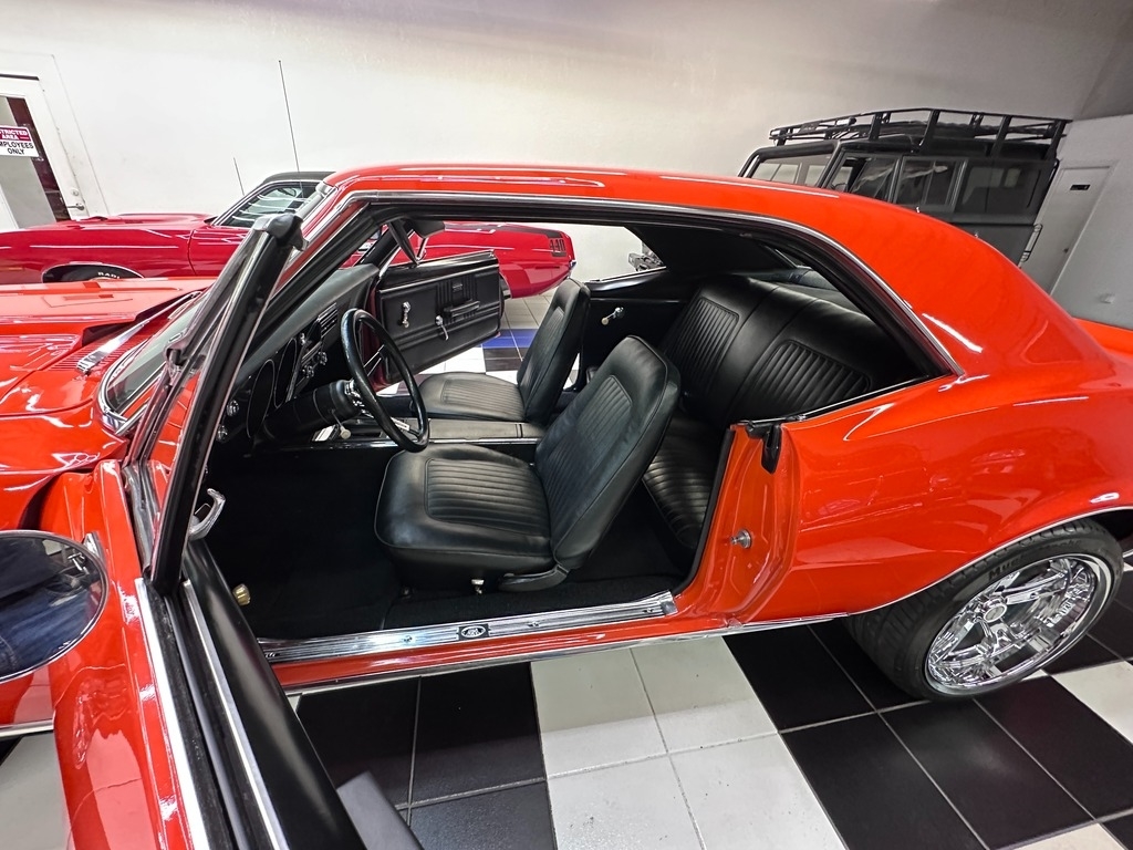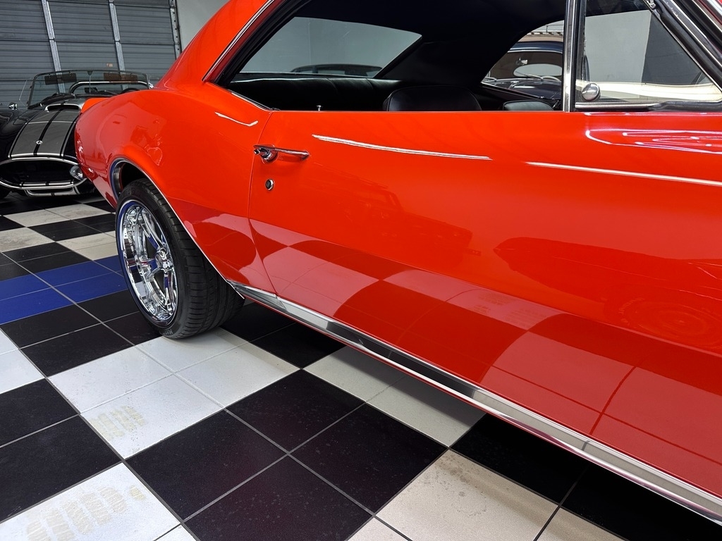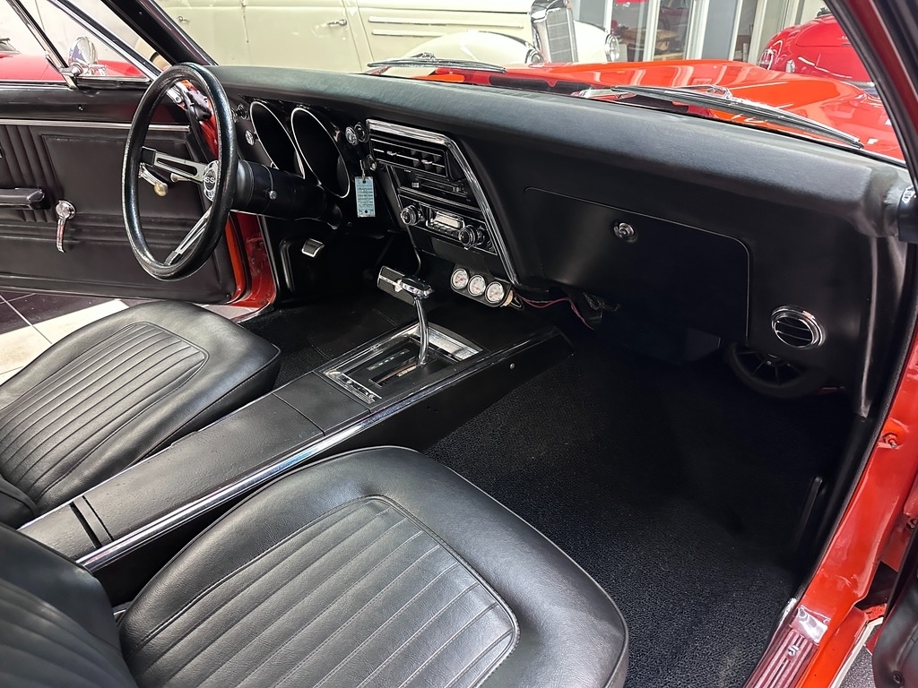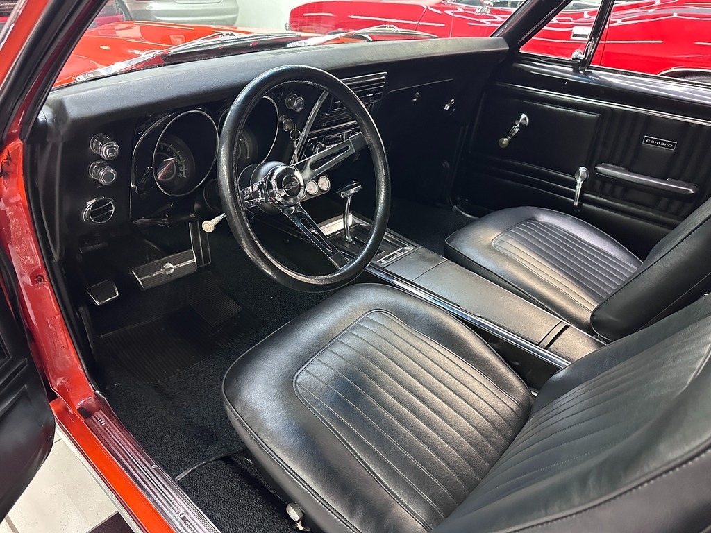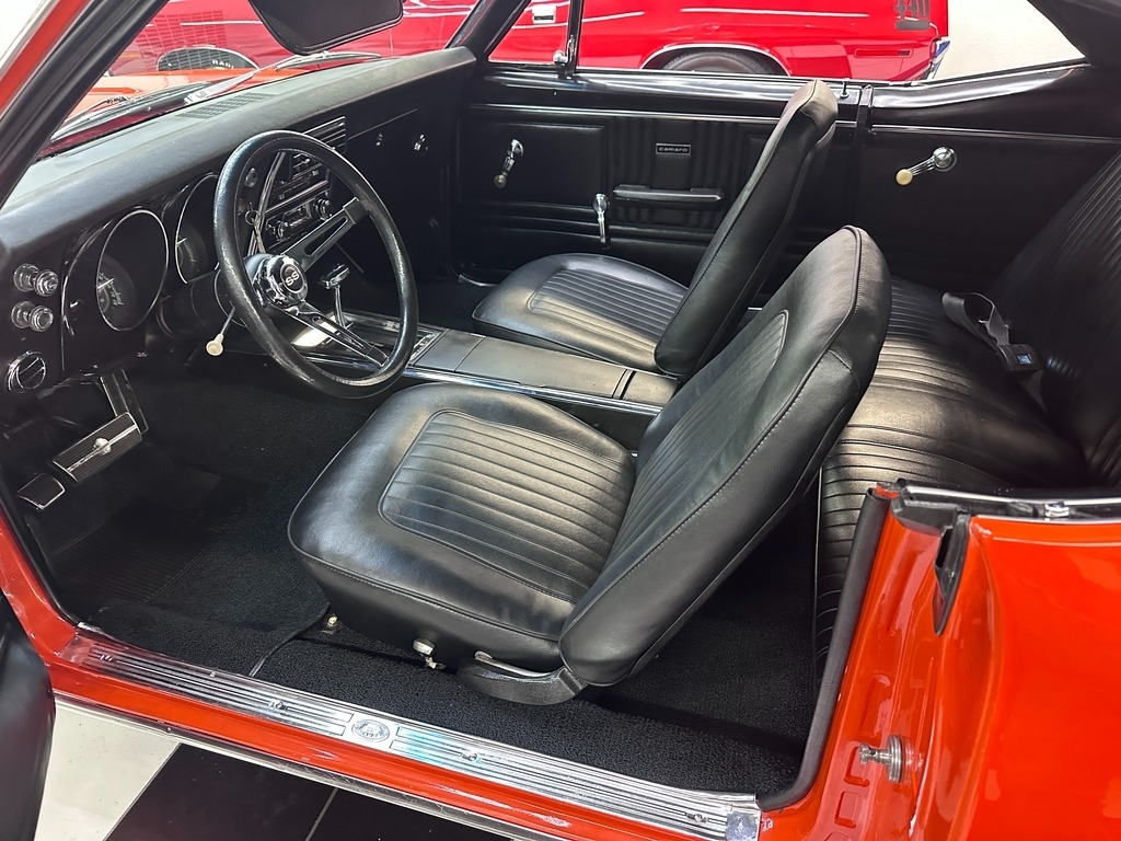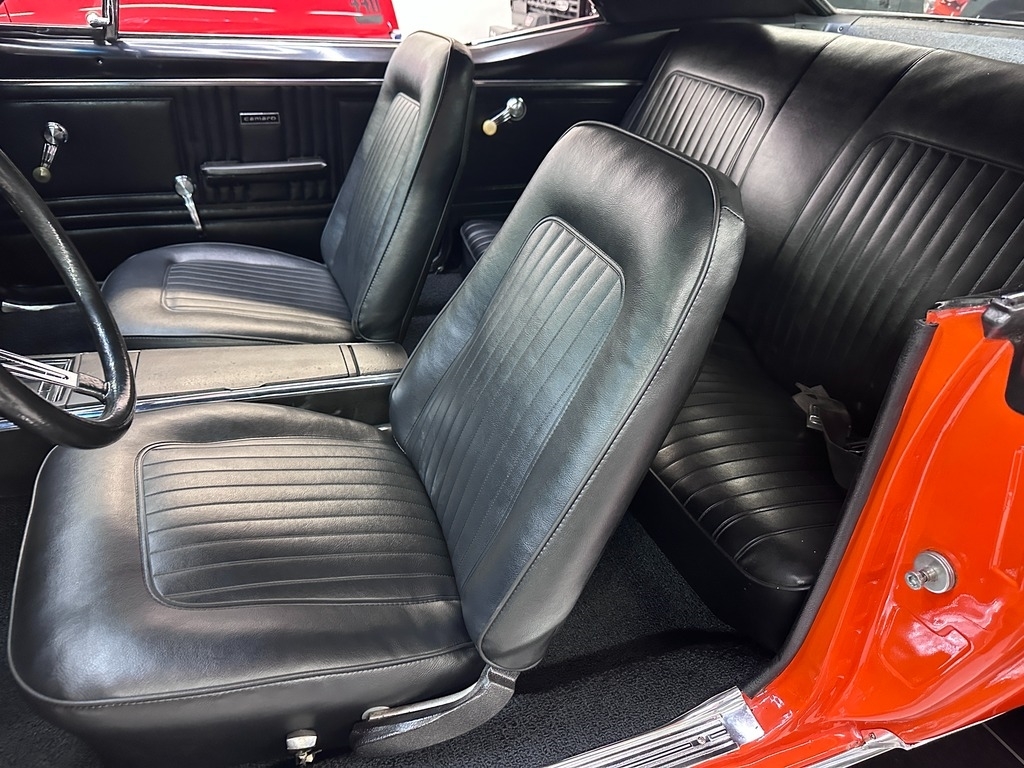 The exterior on this 67' CAMARO is simply stunning. From the striking HUGGER ORANGE finish in showroom condition, to the laser straight lines that show the unique and great design that has made this series so desired over the years, to the 17" Alloy Wheels also in excellent condition, completing this grand exterior look. The new paint has lots of clear, a rich and high gloss that brings the show look to this Camaro!.