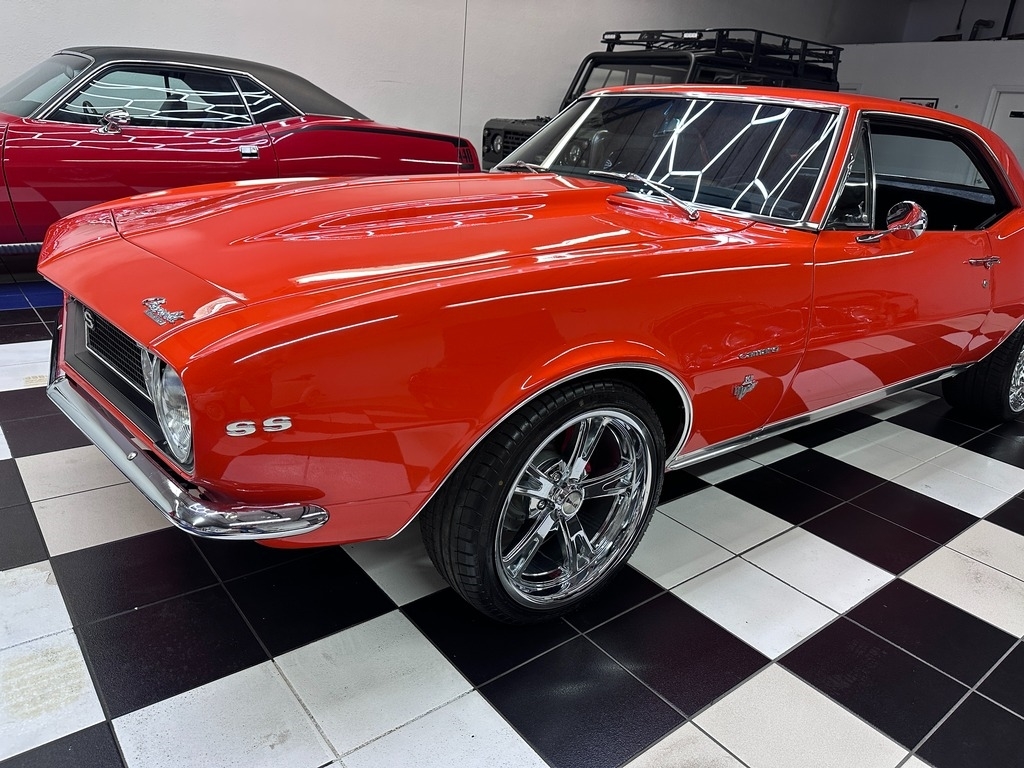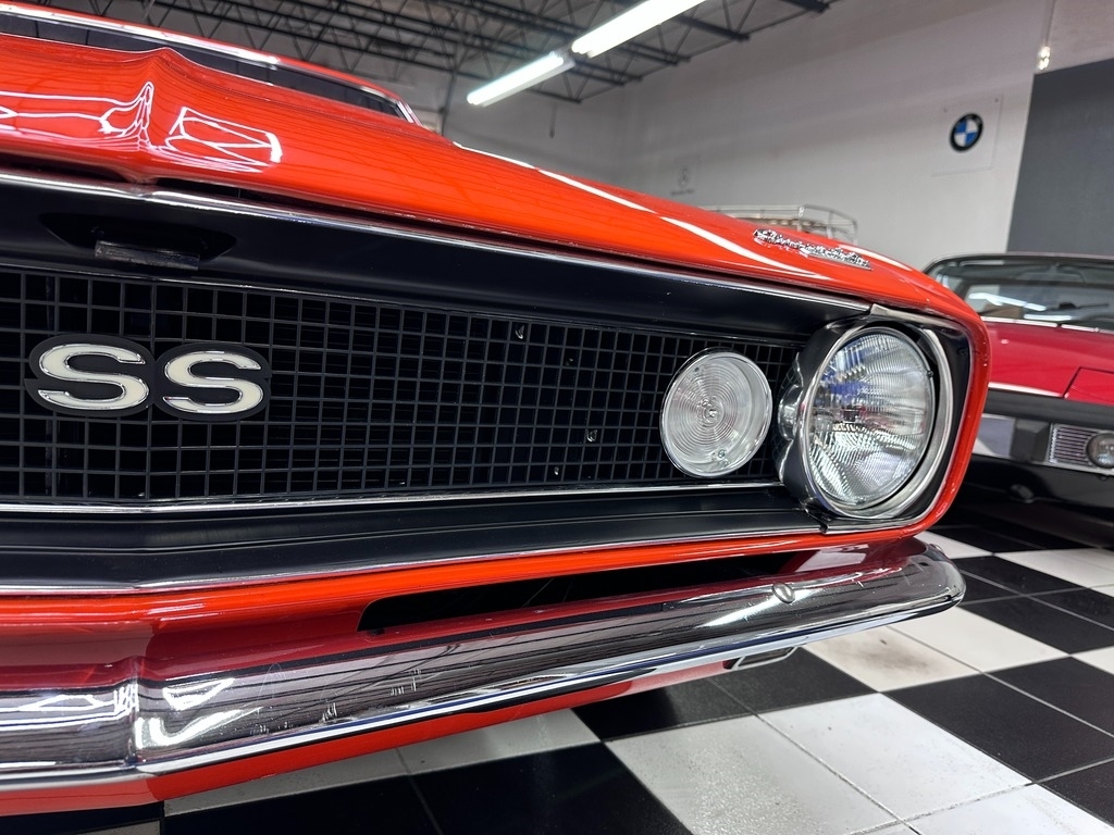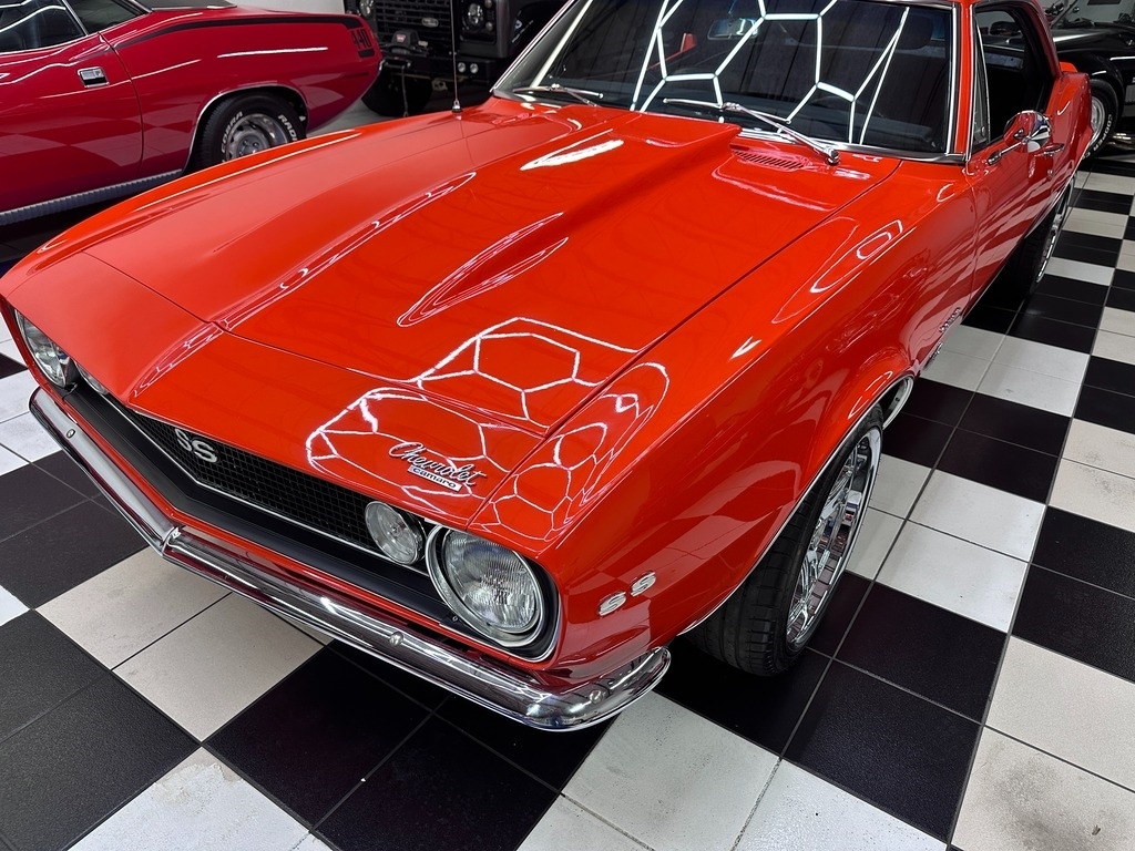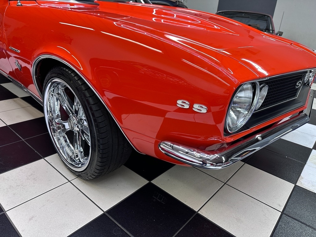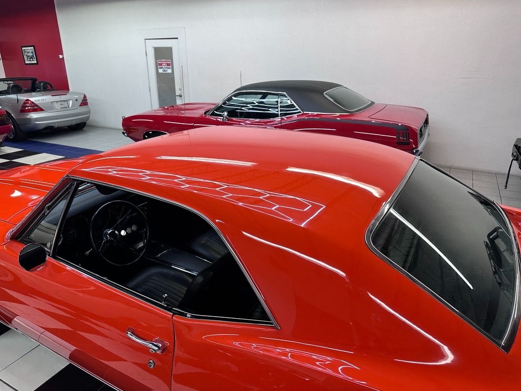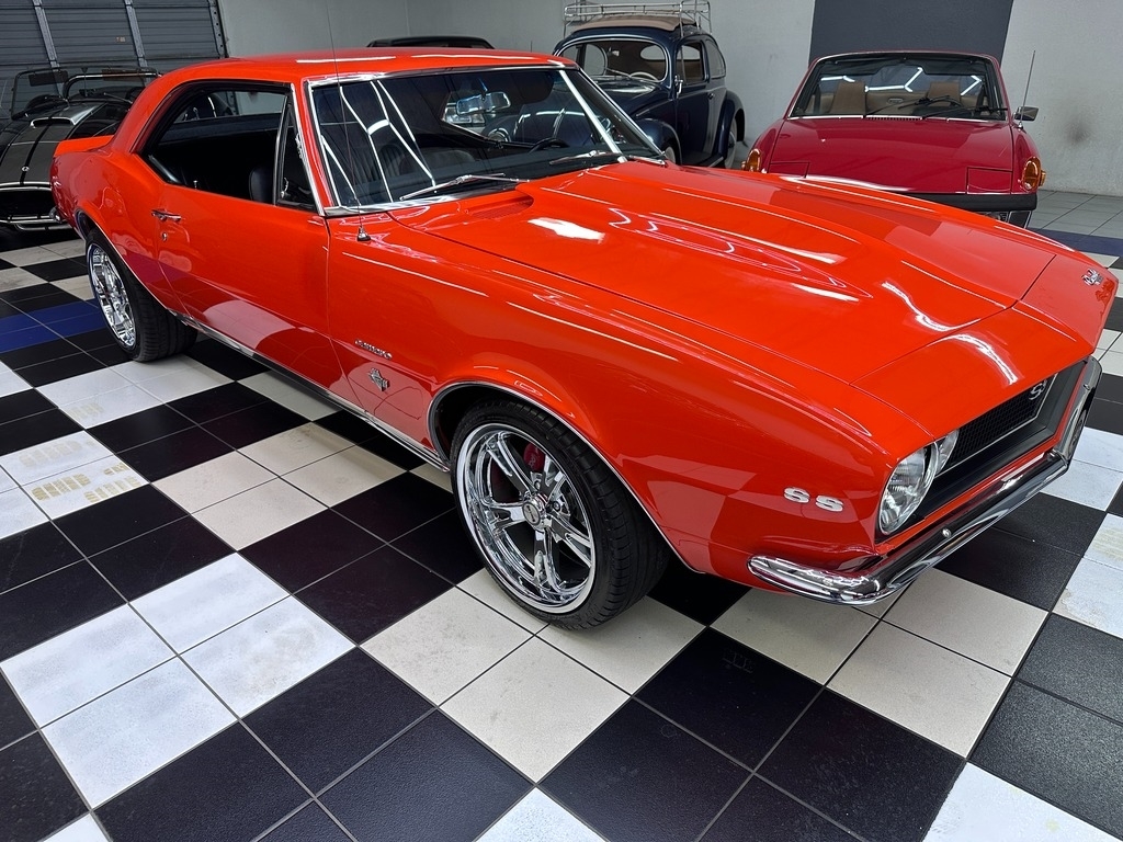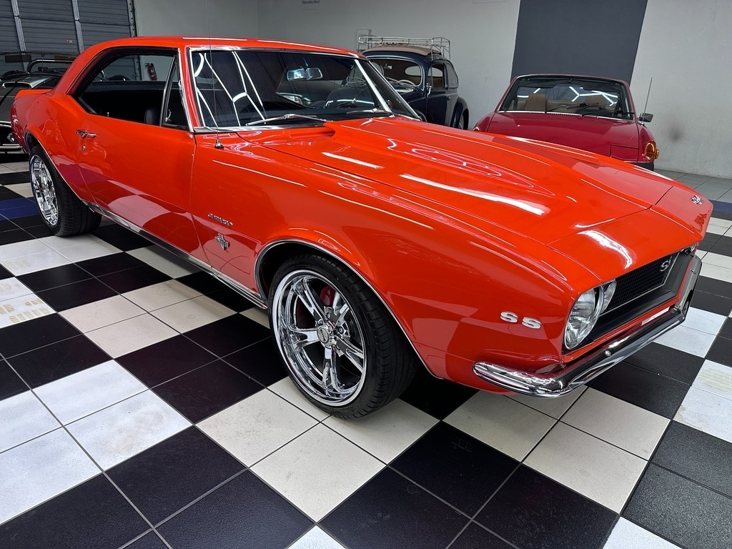 The exterior on this 67' CAMARO is simply stunning. From the striking HUGGER ORANGE finish in showroom condition, to the laser straight lines that show the unique and great design that has made this series so desired over the years, to the 17" Alloy Wheels also in excellent condition, completing this grand exterior look. The new paint has lots of clear, a rich and high gloss that brings the show look to this Camaro!.