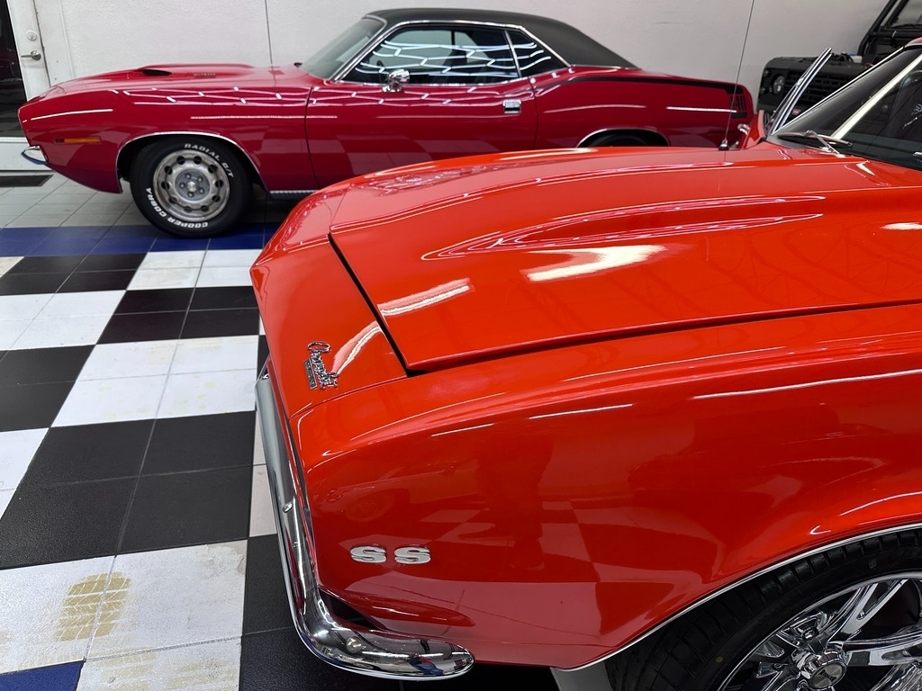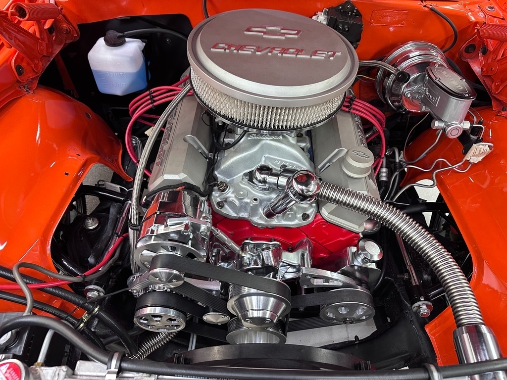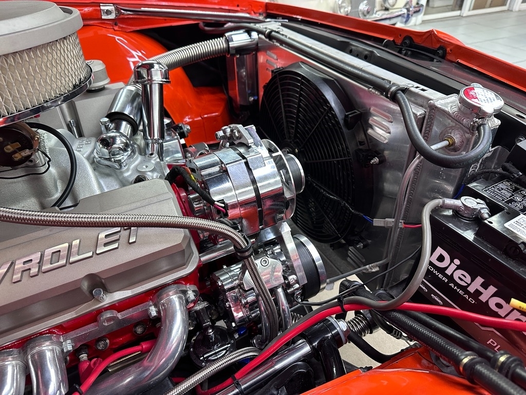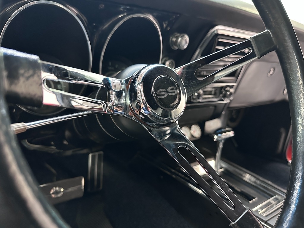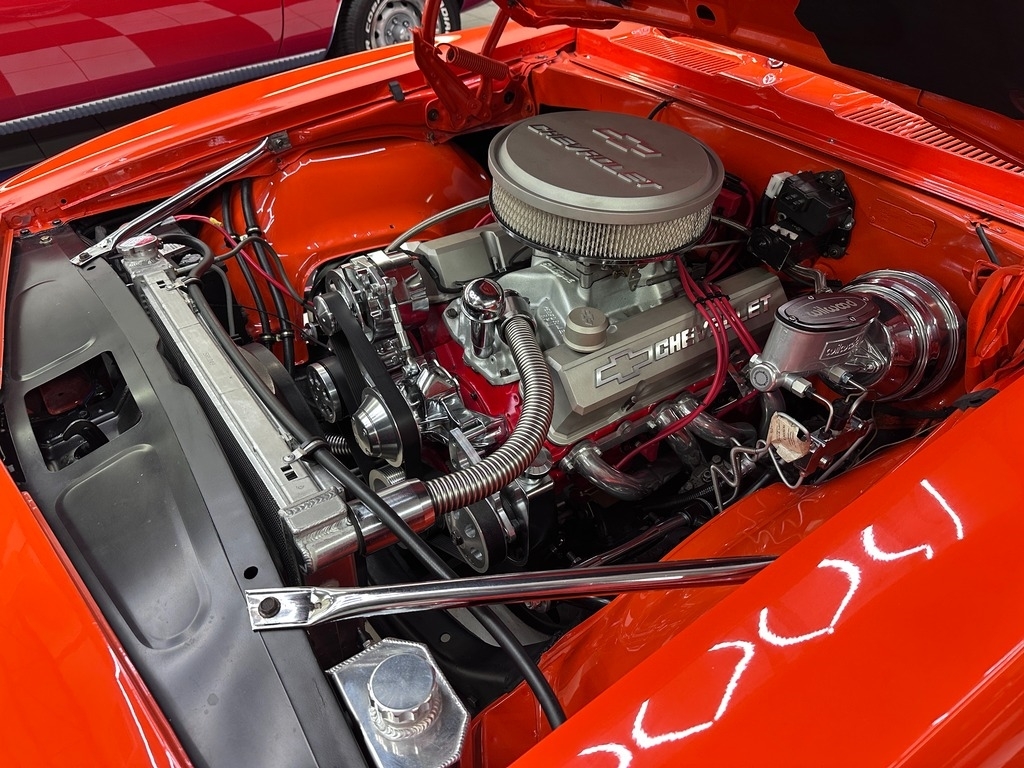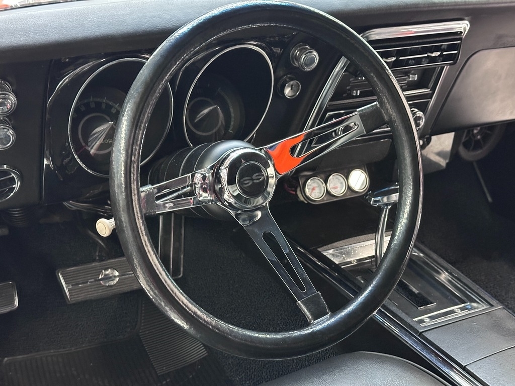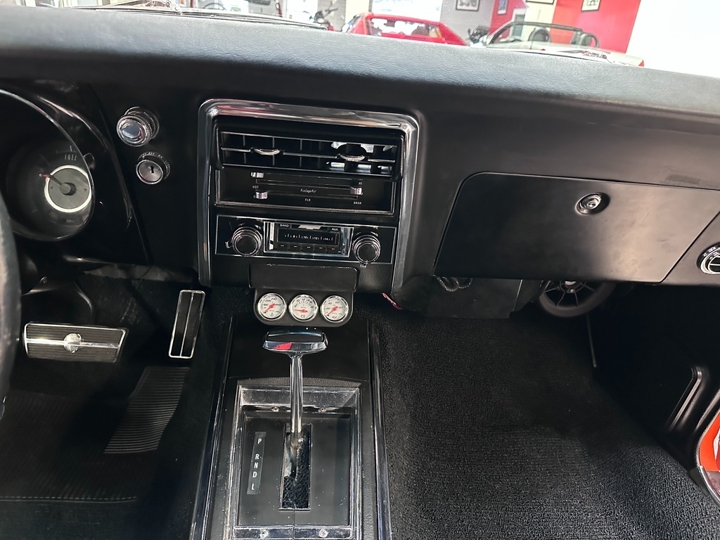 The interior greets you with new Black Seating, carpeting, seats foam, steering wheel, door sill. With zero tears, rips, this interior will really impress you. The dash is a true expression of traditional American design. This car is a sports car driver's paradise when combined with the Powerful roar sound of the heathy 350!