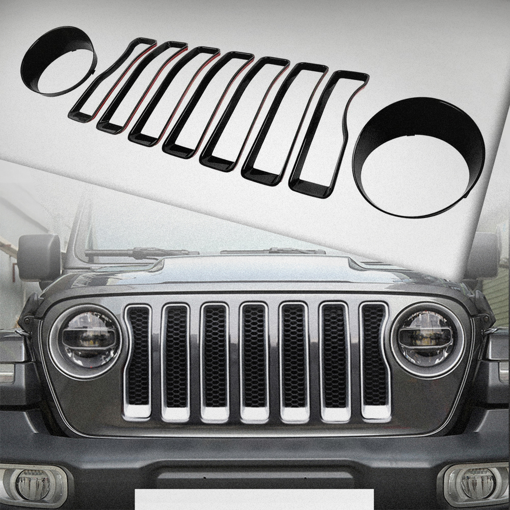 🚗Front Grille Grill Inserts Cover Headlight Cover Trim Kit for Jeep Wrangler JL