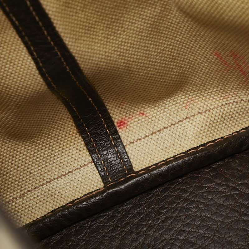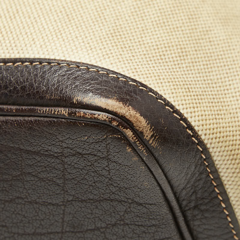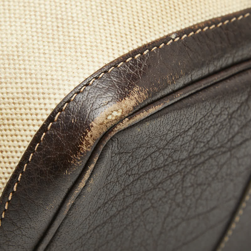 | Condition Details | Outer ⇒ Discolored, Shapeless, Stained, Slightly Rubbed bottom ⇒ corner thread Handle: Rubbed, Scratched, Broken Thread, Deformed Metal⇒Delicate Scratches Inner ⇒ Discolors, Stain, Pen marks, Broken threads |