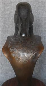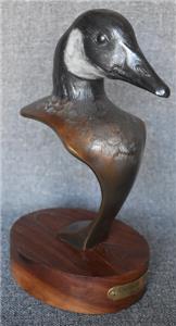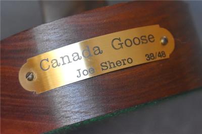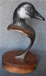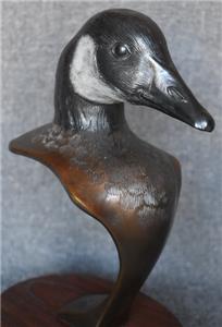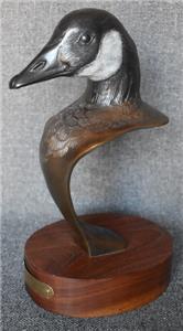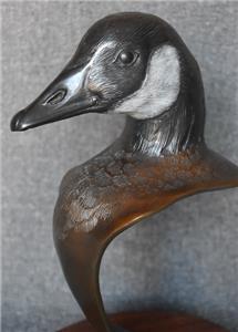 ESTATE TREASURE. HANDSOME CIRCA 1990 JOE SHERO SIGNED LIMITED EDITION (38/48) BRONZE SCULPTURE ON WALNUT STAND ENTITLED "CANADA GOOSE" MEASURES 5 1/4" BY 6 1/2" BY 11 5/8" TALL. EXCELLENT CONDITION. PLEASE SEE COMPANION PIECE SHOWN IN SEPARATE LISTING. ALSO, PLEASE TAKE A MOMENT TO CHECK OUT MY OTHER LISTINGS.....I'LL LOOK FORWARD TO HEARING FROM YOU!