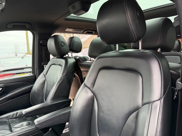 We are pleased to present a Mercedes-Benz V Class 2.2 V250d AMG Line G-Tronic+ Euro 6 (s/s) 5dr 8 Seat LWB. This vehicle comes with a PART-SERVICE HISTORY, 5 service stamps, It also offers a 6 months nationwide warranty and BREAK DOWN COVER. MOT valid until 10 February 2027, with no advisories. The car is equipped with 4 GOOD TYRES and boasts top-of-the-line features, such as FULL LEATHER MEMORY HEATED SEATS SUN AND PANAROMIC ROOF big screen SAT NAV, camera crush sensors media Bluetooth, USB audio, cruise control, and much more. It runs and drives like new and is in good condition both inside and out, The car is a beautiful Black colour and comes with a clear HPI report and warranted mileage. The full VOSA history, service records, and spare key are all included. Rest assured, all our cars are thoroughly inspected and fully valeted. We welcome inspections, test drives, and part exchanges., We accept all major credit, debit, and online payments, and we offer good rate FINANCE options. Nationwide delivery is available., For more information, please visit our website at
