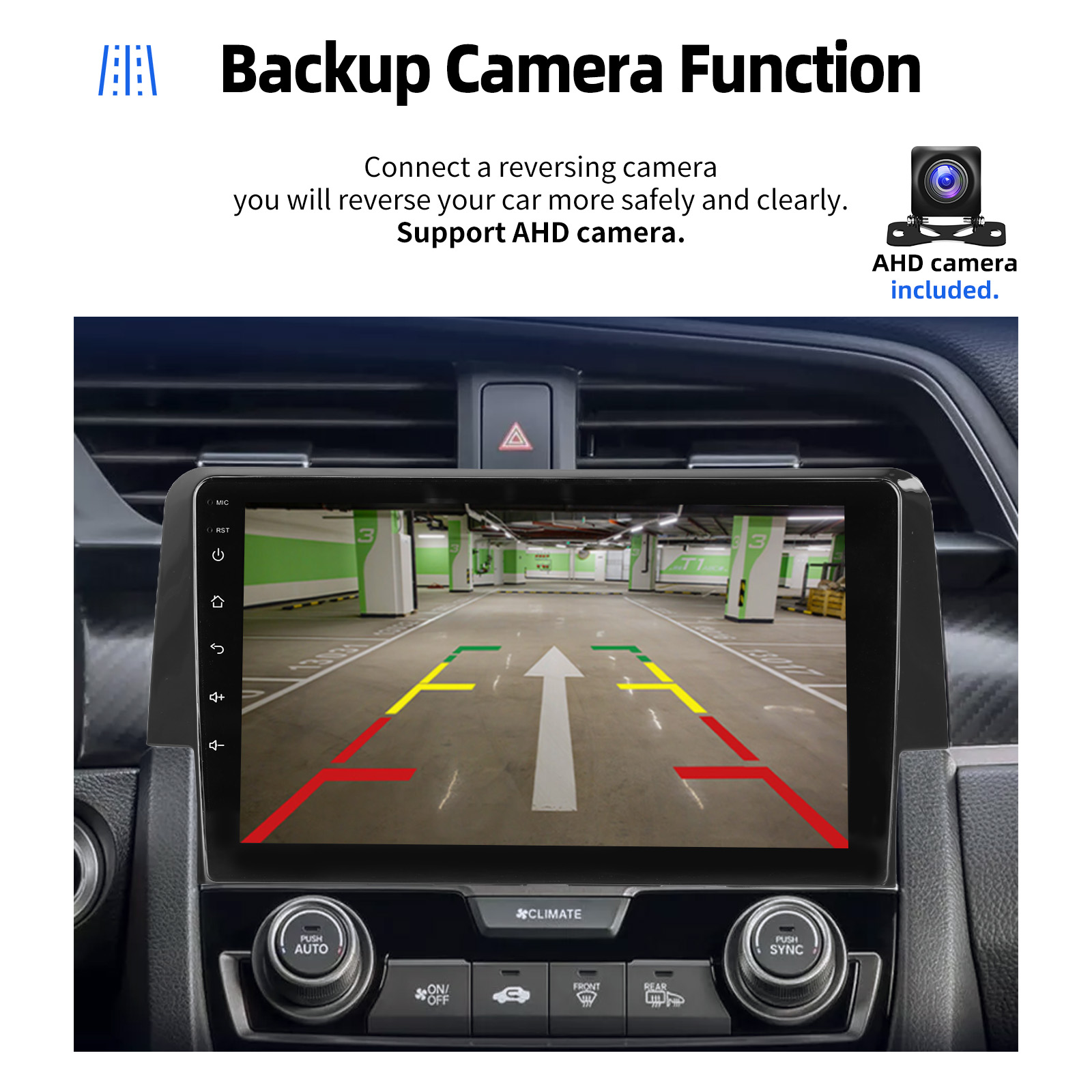 AHD Rear View Camera Input & Steering Wheel Control: Support AHD & CVBS camera. After connecting to the rear view camera. The radio automatically displays the reversing image as soon as you engage reverse gear. Make your daily reversing safer. Support original car steering wheel control to make driving more convenient and safer.