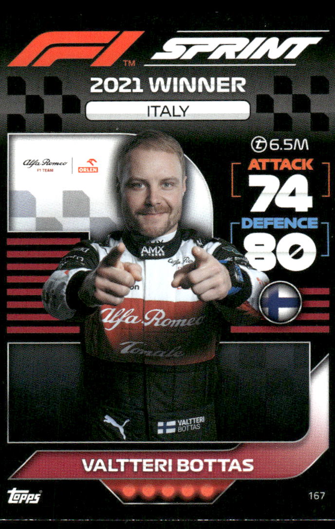 2022 Topps Formula 1 Turbo Attax #167 Valtteri Bottas Sprint Race Winners - RAC