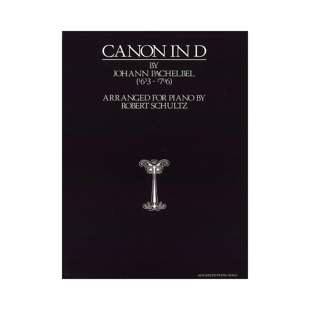 One of our top-selling sheet arrangements of this famous piece. Canon in D is the most famous piece of music by Johann Pachelbel, written in or around 1680 as a piece of chamber music for three violins and basso continuo. Robert Schultz's faithful setting is for the advanced pianist. Tasteful use of arpeggios, rolled chords, and dynamics brings out a rich, sonorous sound that evokes the original string arrangement. Perfect for weddings, recitals, or any other special occasion.