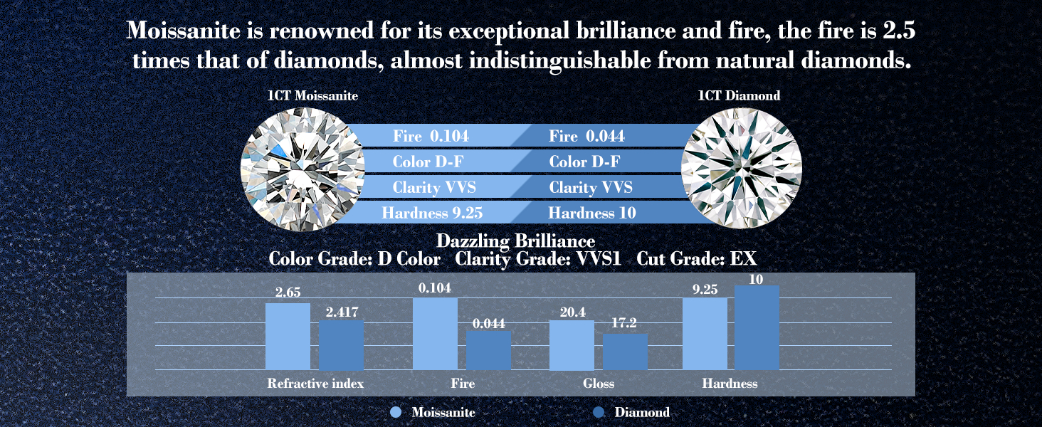 3. The fire of moissanite is more than 2.5 times that of South African diamonds, sparkling