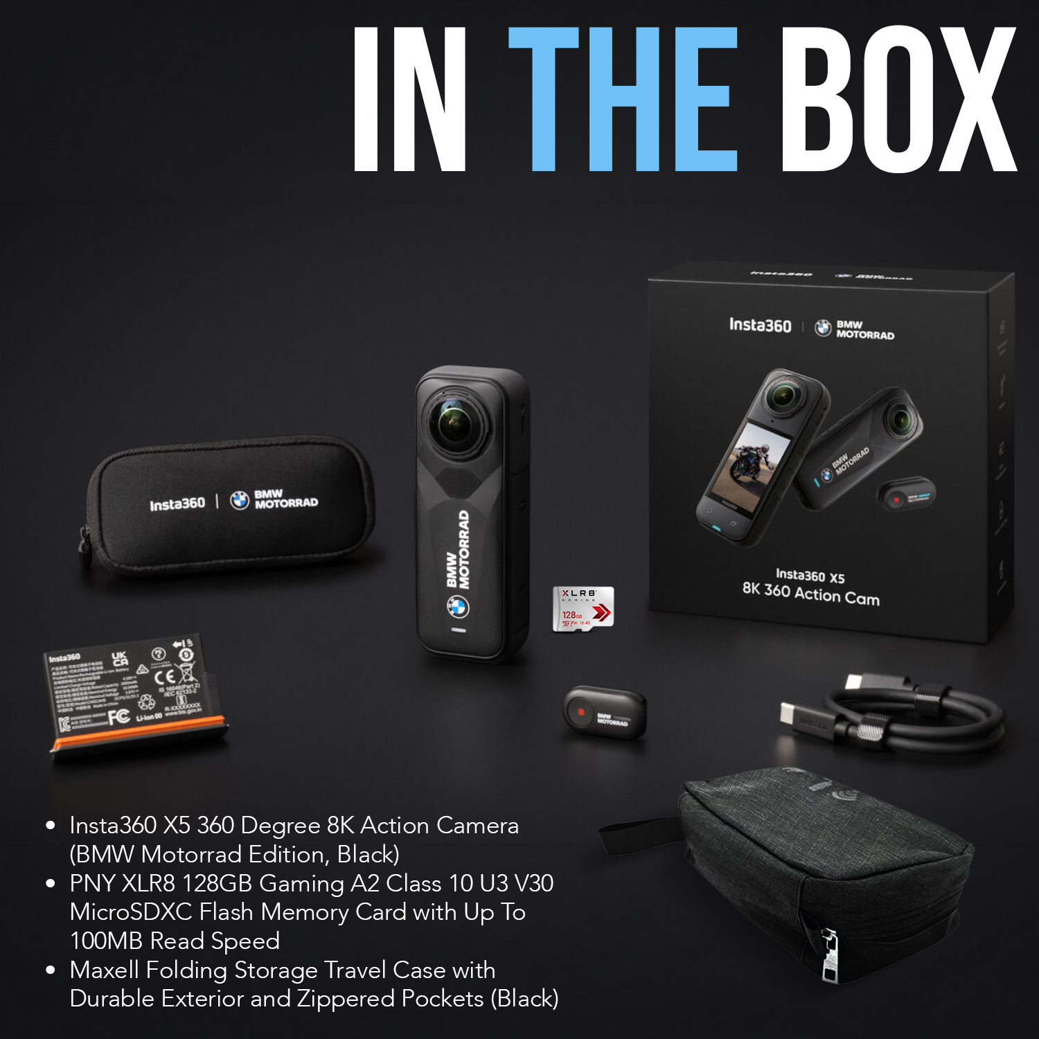 Designed for motorcycle enthusiasts who live for cross-country road trips or city adventures, the BMW Motorrad Edition Insta360 X5 360° Camera delivers jaw-dropping 8K30 360° video and 5K60 Active HDR video. Enhanced low-light performance ensures that every twist and turn of your journey is recorded with vibrant clarity. The edition includes the X5 camera, a mini remote, and a pre-installed 2800mAh Ultra battery, giving you long shooting times for uninterrupted adventures. Motorcycle-specific features like a custom stats dashboard, tougher replaceable lenses, and automatic plate blur make this camera uniquely suited for riders.