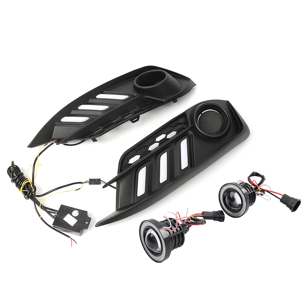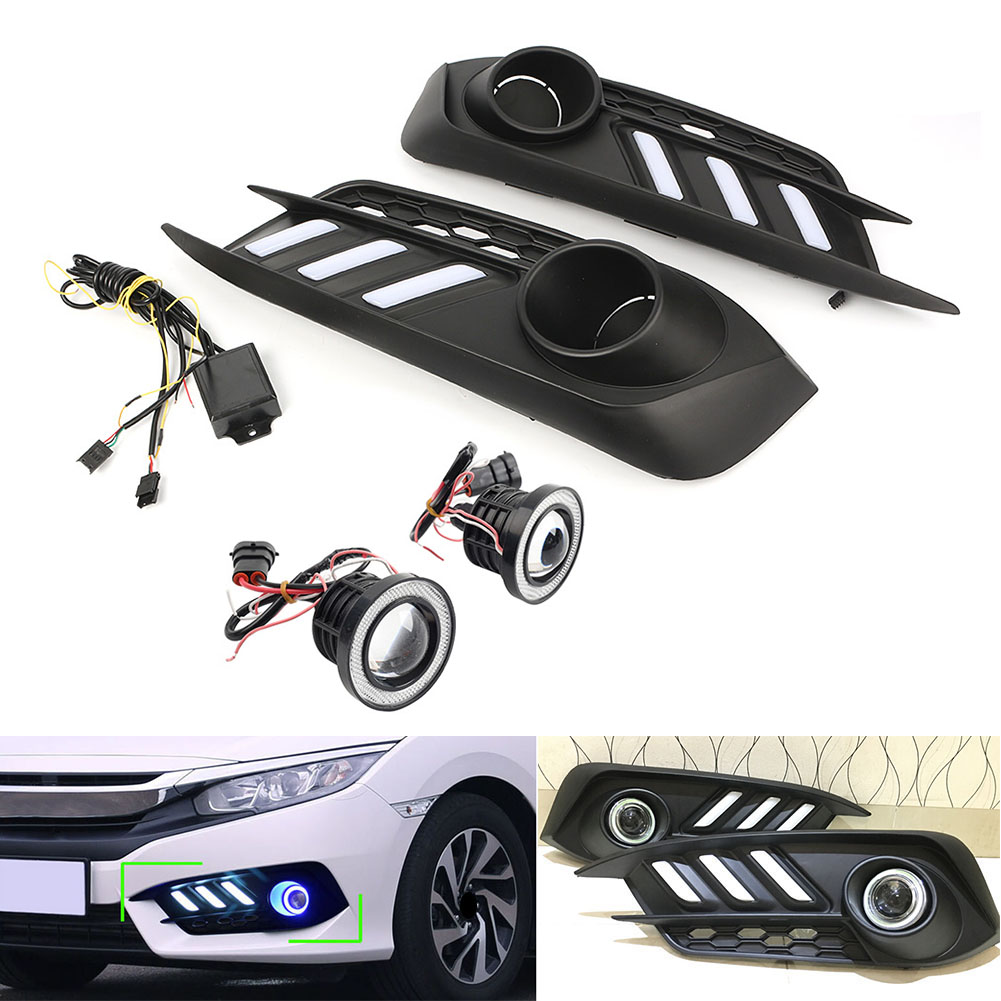 LED DRL Fog Light Projector+Angel Eye Kit For Honda Civic 4DR 2016-2018