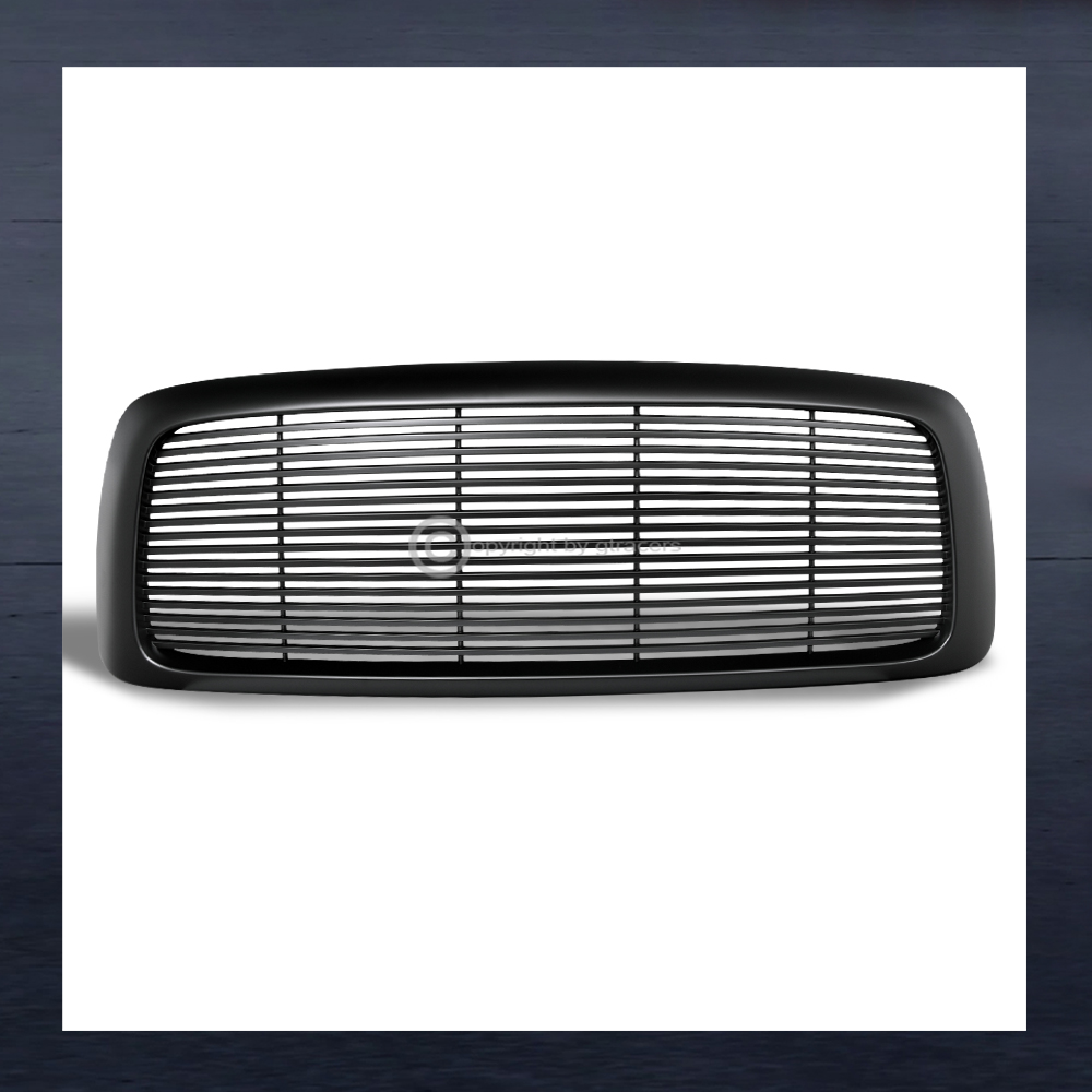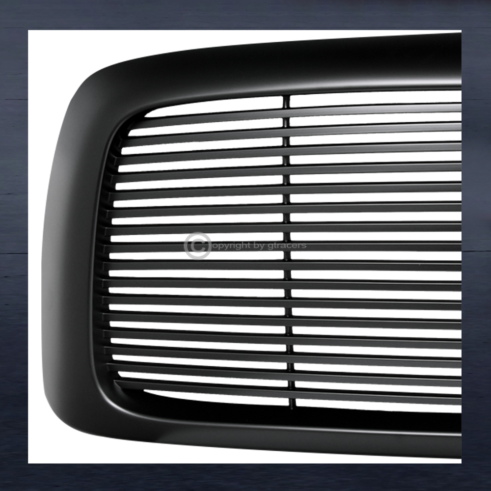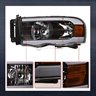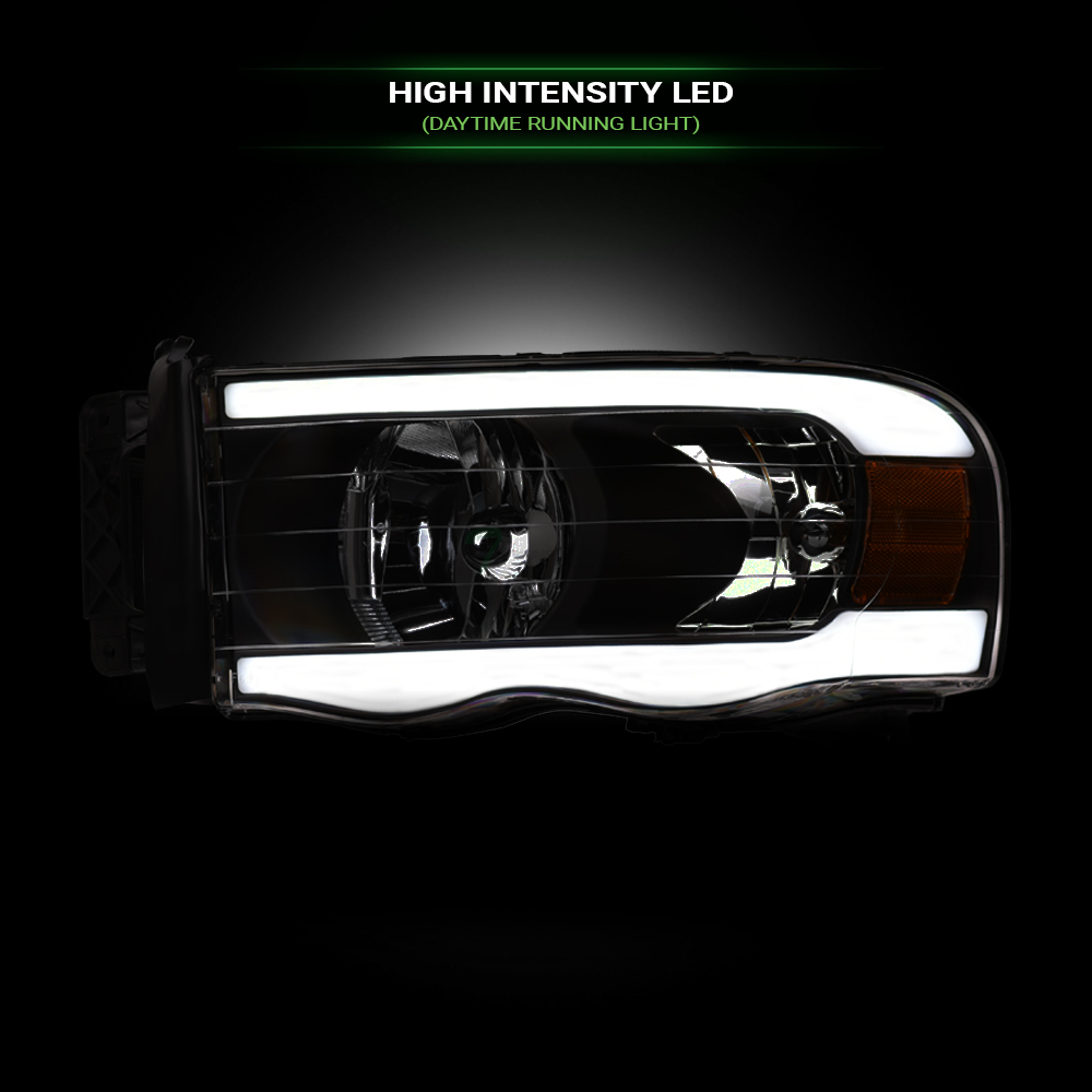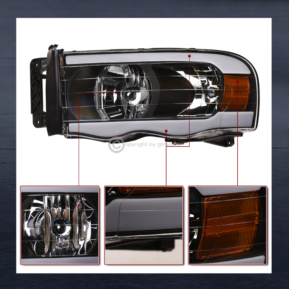 For 2002-2005 Dodge Ram Black LED Tube Headlights Amber+Matte Horizontal Grille