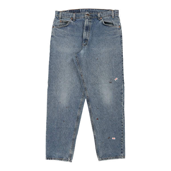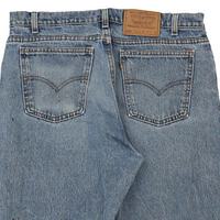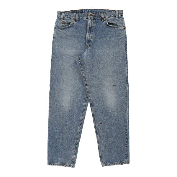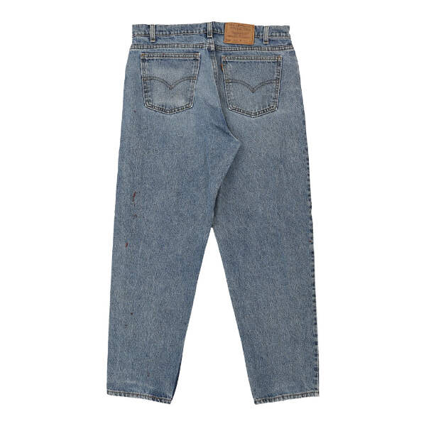 Vintage Levis 550 Orange Tab blue jeans, fit a 36" waist and 30" inseam.