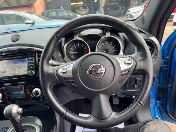 We are pleased to present a remarkable Nissan Juke 1.6 Bose Personal Edition XTRON Euro 6 5dr. This vehicle comes with a PART-SERVICE HISTORY, 4 service, just been serviced, It also offers a 6 months nationwide warranty. MOT valid until 12 March 2027, no advisories. The car is equipped with 4 GOOD TYRES and boasts top-of-the-line features, such as HALF LEATHER SEATS, big screen SAT NAV, camera, media Bluetooth, USB audio, cruise control, and much more. It runs and drives like new and is in good condition both inside and out, The car is a beautiful Blue colour and comes with a clear HPI report and warranted mileage. The full VOSA history, service records, and spare key are all included. Rest assured, all our cars are thoroughly inspected and fully valeted. We welcome inspections, test drives, and part exchanges., We accept all major credit, debit, and online payments, and we offer good rate FINANCE options. Nationwide delivery is available., For more information, please visit our website at