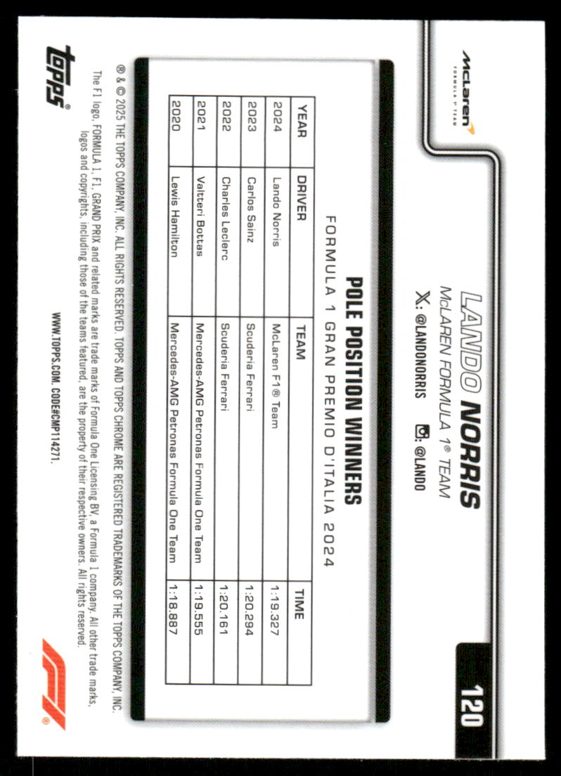 2025 Topps Chrome Formula 1 #120 Lando Norris PP - RAC