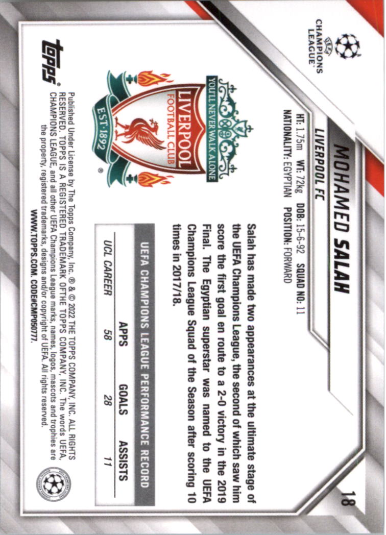 2021-22 Topps UEFA Champions League #18 Mohamed Salah - SCR
