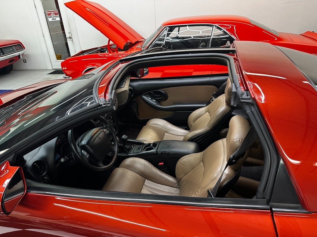Podium Auto proudly presents this beautifully preserved 2001 Pontiac Firebird Trans Am T-tops, finished in the highly desirable Sunset Orange Metallic over a Camel interior. With only 60,179 original miles, a rust-free and salt-free history, and the highly sought-after 6-speed manual transmission, this Trans Am represents one of the finest and most collectible examples of Pontiac’s final-generation F-body performance era.