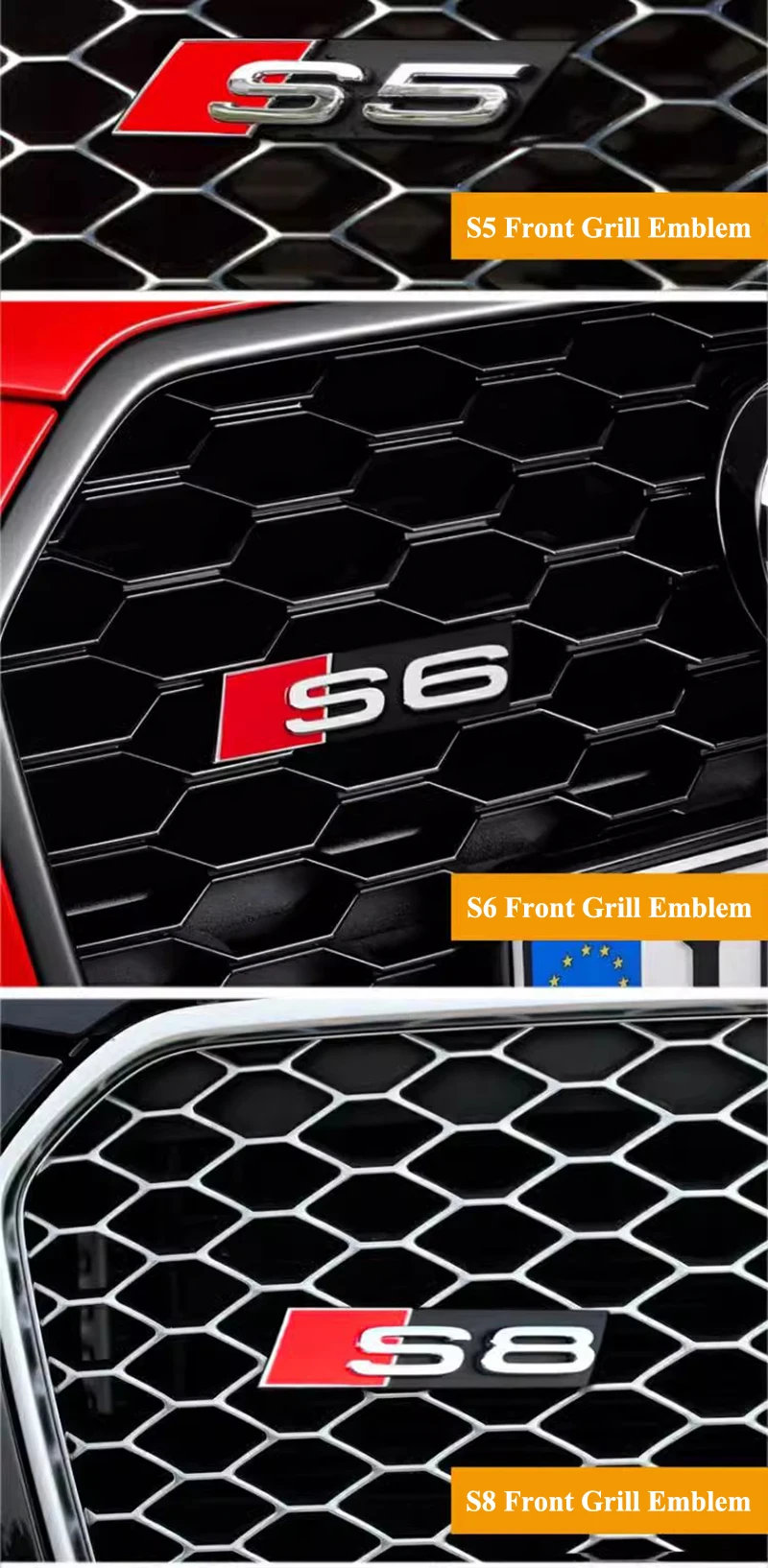 3d ABS Chrome Black Logo S3 S4 S5 S6 S7 S8 Emblem Honeycomb Cellular Car Front Grille Bdage For Audi S 3 4 5 6 7 8 Accessories
