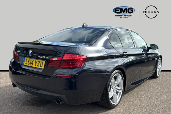 Cambridge Nissan are pleased to offer this powerful and highly specified BMW 535d M Sport Saloon Auto finished in stunning Carbon Black Metallic and registered in 2014 14.With just 49377 miles this impressive 5 Series combines luxury performance and refinement in one superb executive saloon. Powered by BMW’s formidable 3.0-litre twin-turbo diesel engine producing 313 ps paired with a smooth automatic transmission it delivers exceptional performance alongside excellent long-distance comfort. Fully Euro 6 / ULEZ compliant it’s perfectly suited for both city and motorway driving.This example also benefits from an impressive £4940 of factory-fitted optional equipment enhancing both technology and driving enjoyment.? Factory-Fitted Optional Equipment £4940 when new19 M Double-Spoke Style 351M alloy wheels with run-flat tyres – £1230Head-Up Display – £995Harman/Kardon premium sound system – £895Reversing assist camera – £375Fineline Anthracite wood interior trim – £355Sun protection glass – £345Folding exterior mirrors with auto-dimming – £300Tyre pressure monitoring system – £255M rear spoiler – £190? Key Features3.0 diesel engine 313 psAutomatic transmissionM Sport specificationEuro 6 / ULEZ compliant2014 14 registration49377 milesCarbon Black Metallic exterior finishSatellite navigation BMW Professional MultimediaBMW iDrive infotainment systemBluetooth connectivityDual-zone climate controlCruise controlParking sensorsM Sport styling packageSports seats with M Sport detailingISOFIX child seat mounting points? Ownership & Peace of Mind4 owners from newHPI clear & mileage verifiedFully inspected prior to saleMinimum 3-month warranty includedExtended warranty options availablePart exchange welcomeCompetitive finance options availableAvailable for immediate deliveryThis BMW 535d M Sport offers exceptional performance luxury specification and outstanding driving dynamics — a superb opportunity to own a powerful and well-equipped executive saloon.???? Available now at Cambridg