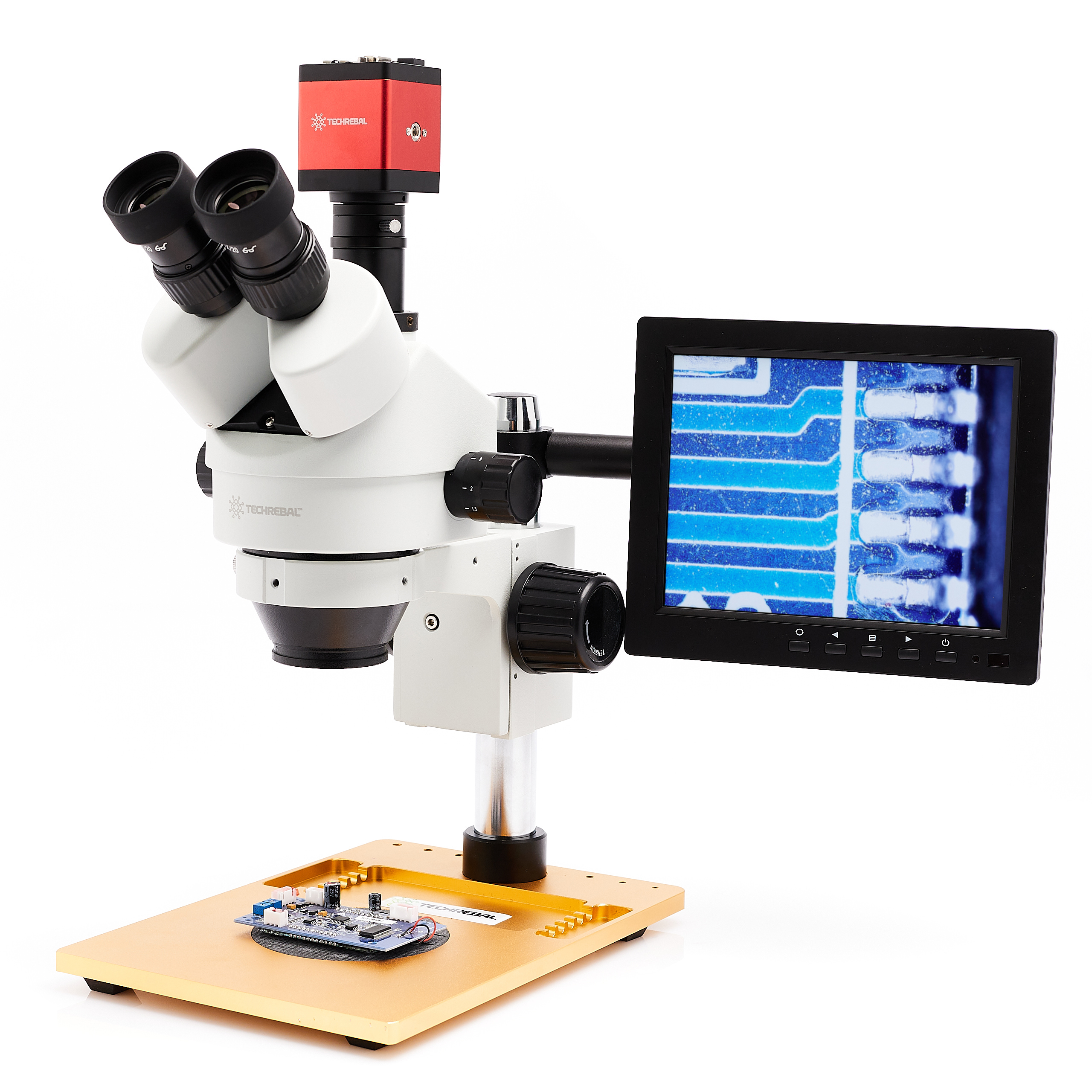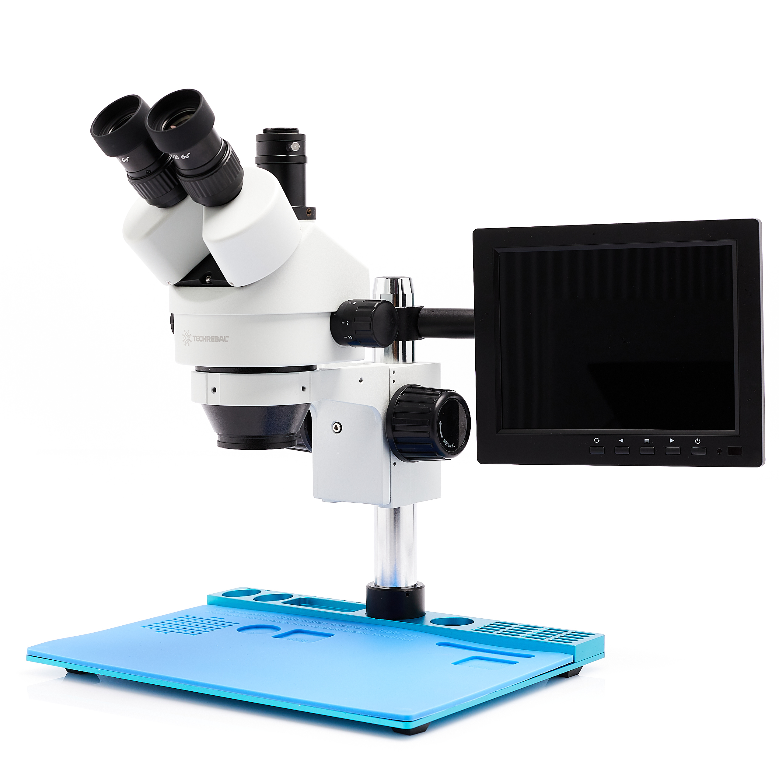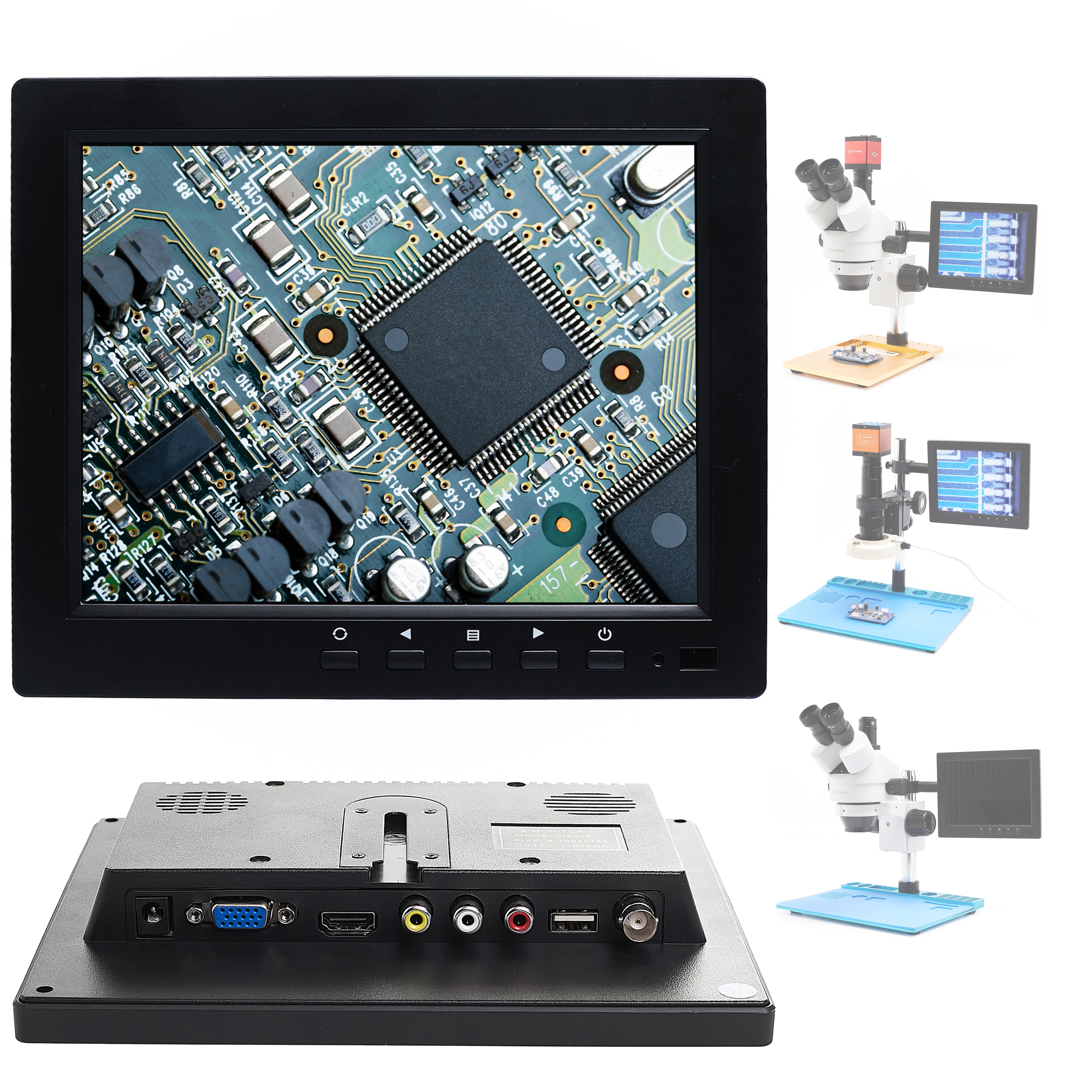 Display per microscopi stereoscopici e digitali. Ideale per tutti i tipi di lavoro, per saldare, riparare, osservare, ecc. Si monta con il supporto disponibile nella nostra gamma o sul supporto incluso nel set. Il supporto è montato sul pilastro dello stereo microscopio, facilita notevolmente il lavoro e consente di risparmiare spazio sul posto di lavoro. Permette una regolazione a 360 gradi e una libera regolazione verso l'alto e verso il basso sul pilastro, con la possibilità di montare il display in 4 punti (4 viti).