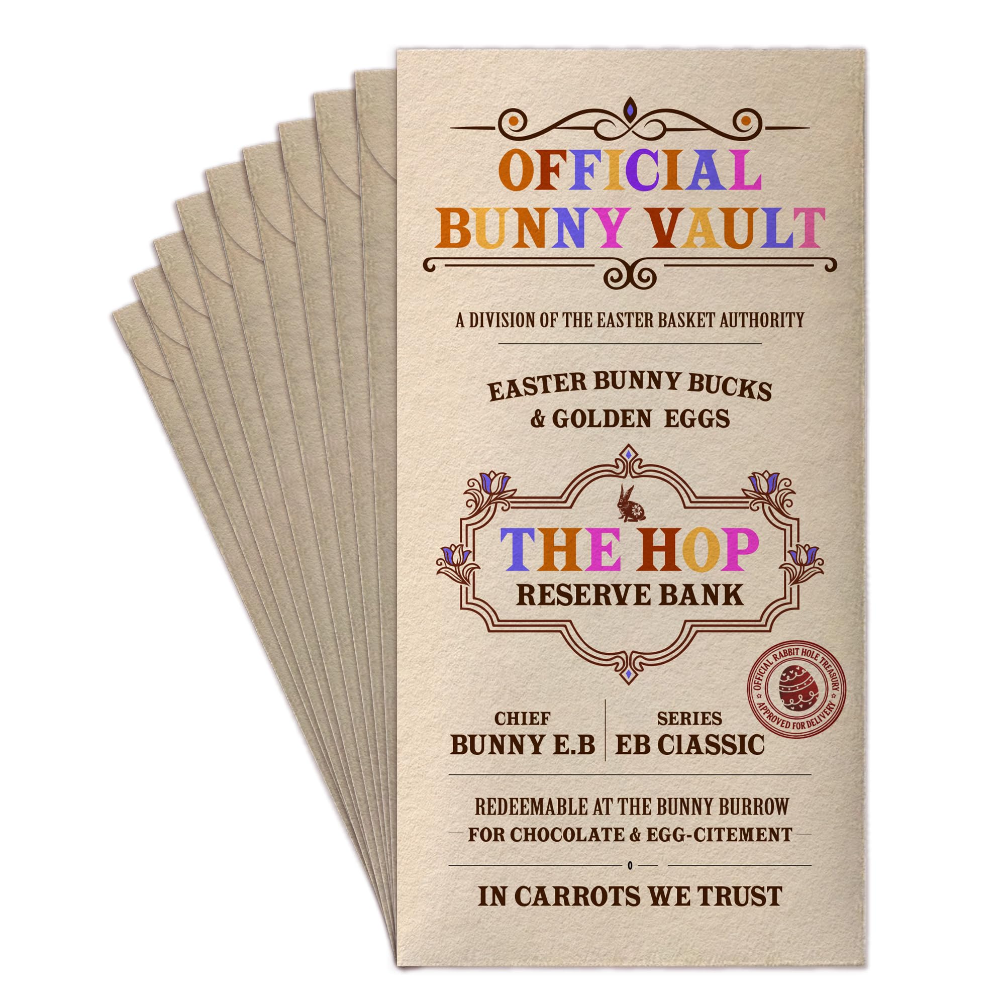 ️ Vintage Bunny Vault Design: Featuring a playful retro banknote style with bunny-themed details, these bunny bucks create a charming and memorable Easter surprise.