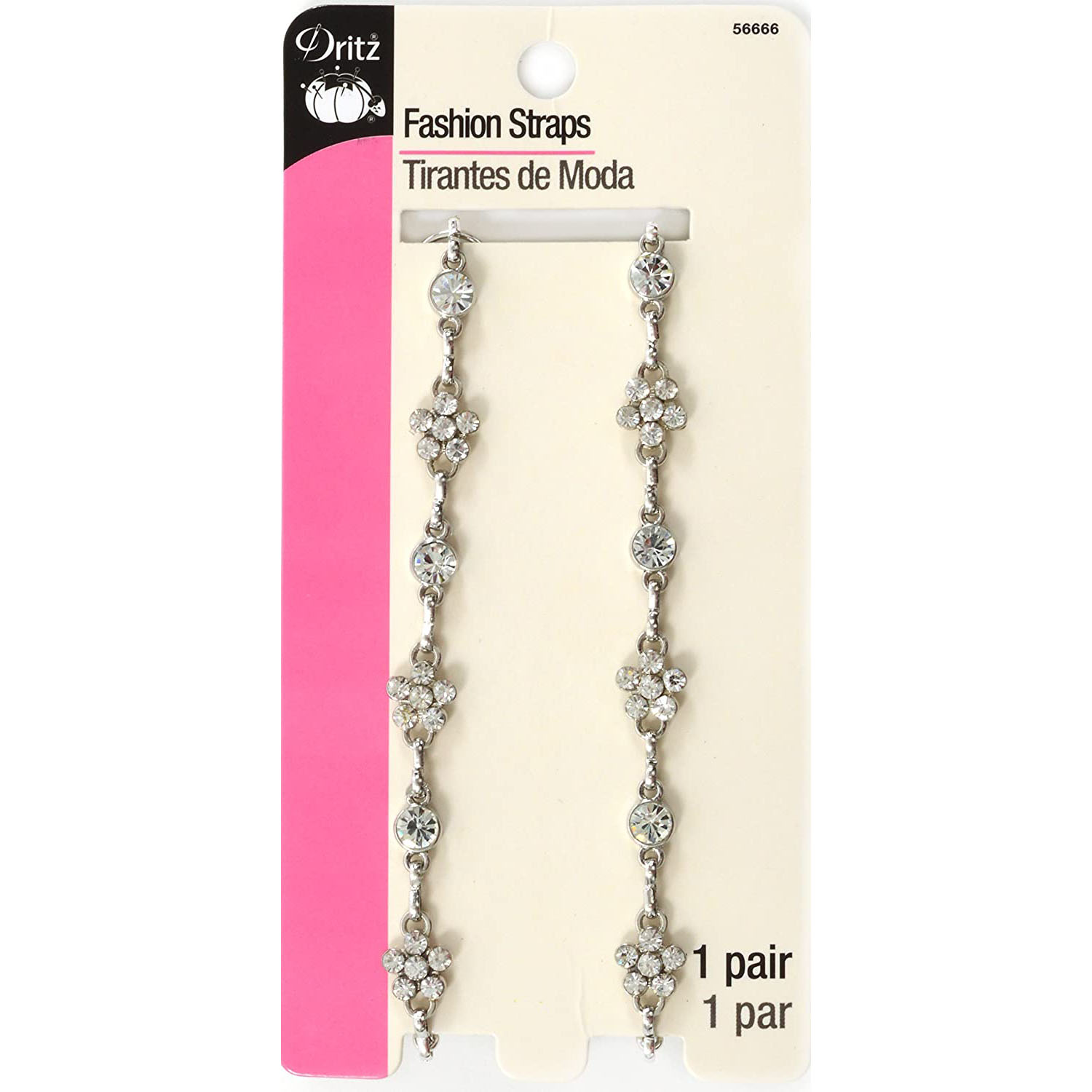 Add a bit of style to your everyday attire or special occasion garments with Dritz fashion straps featuring 5-petal Rhinestone flowers and stud rhinestones with 3/8 inch clear polyurethane straps. Easy to use with any garment that has detachable straps. Worn with sheer fabrics, halters, tanks, t-shirts, tube tops and swimwear, these fashion straps make trying to hide bra straps a thing of the past. Total extended length from end of metal hook to end of opposite metal hook with strap fully extended is 18-1/4 inch. Package contains 1 set of straps.