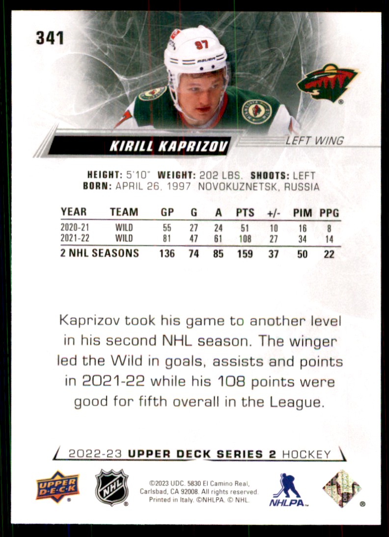 | 2022-23 Upper Deck: Kirill Kaprizov Hockey Cards #341 |