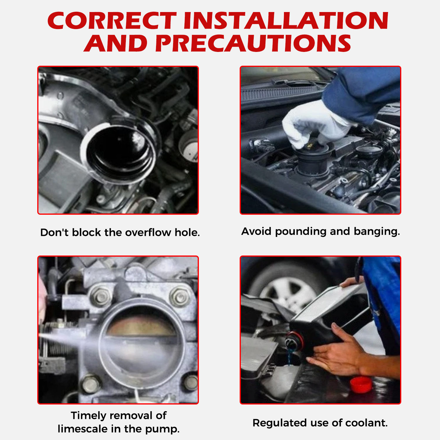 - Confirm the item(s) will install and operate properly before use or modification.