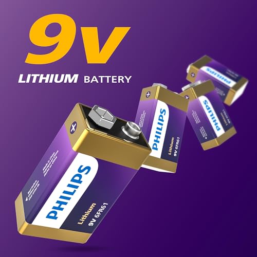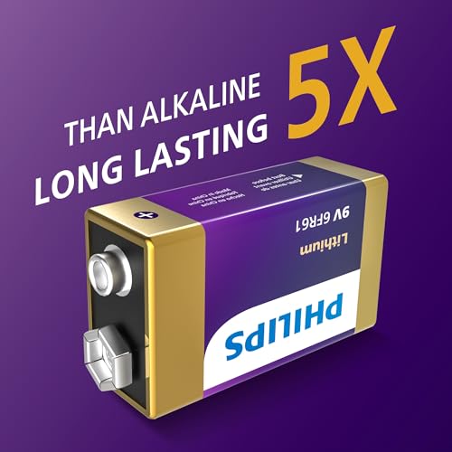 LONG-LASTING BATTERIES DESIGNED: Philips 9 Volt lithium batteries deliver the lasting power longer than alkaline batteries up to 5x you can count on for electronic devices throughout the houshold or office device .