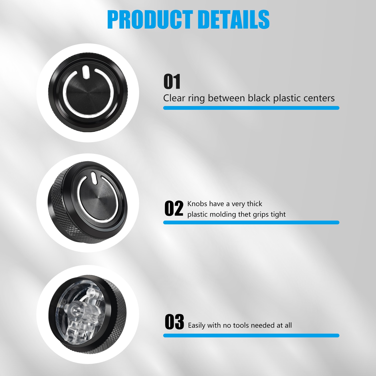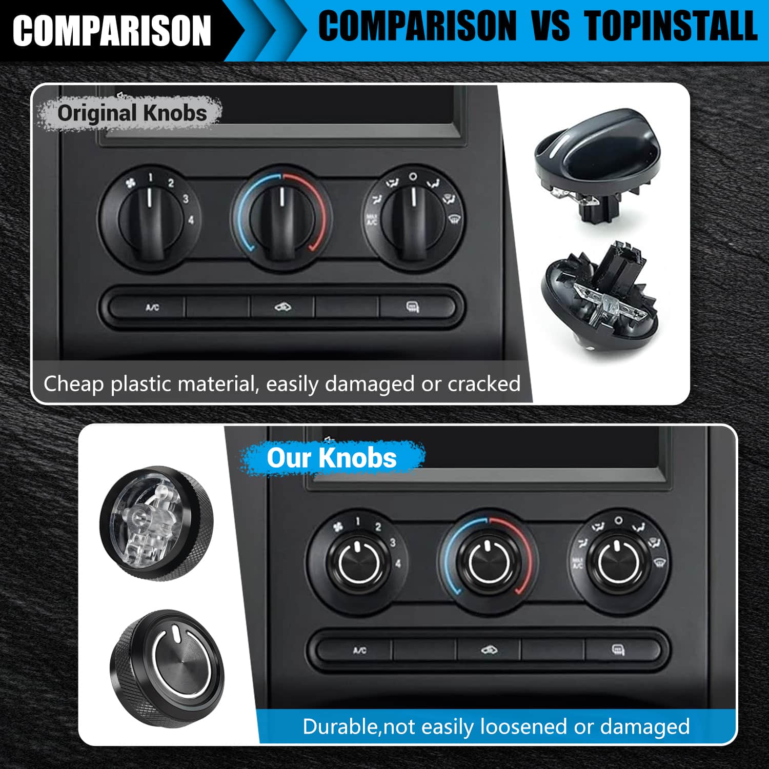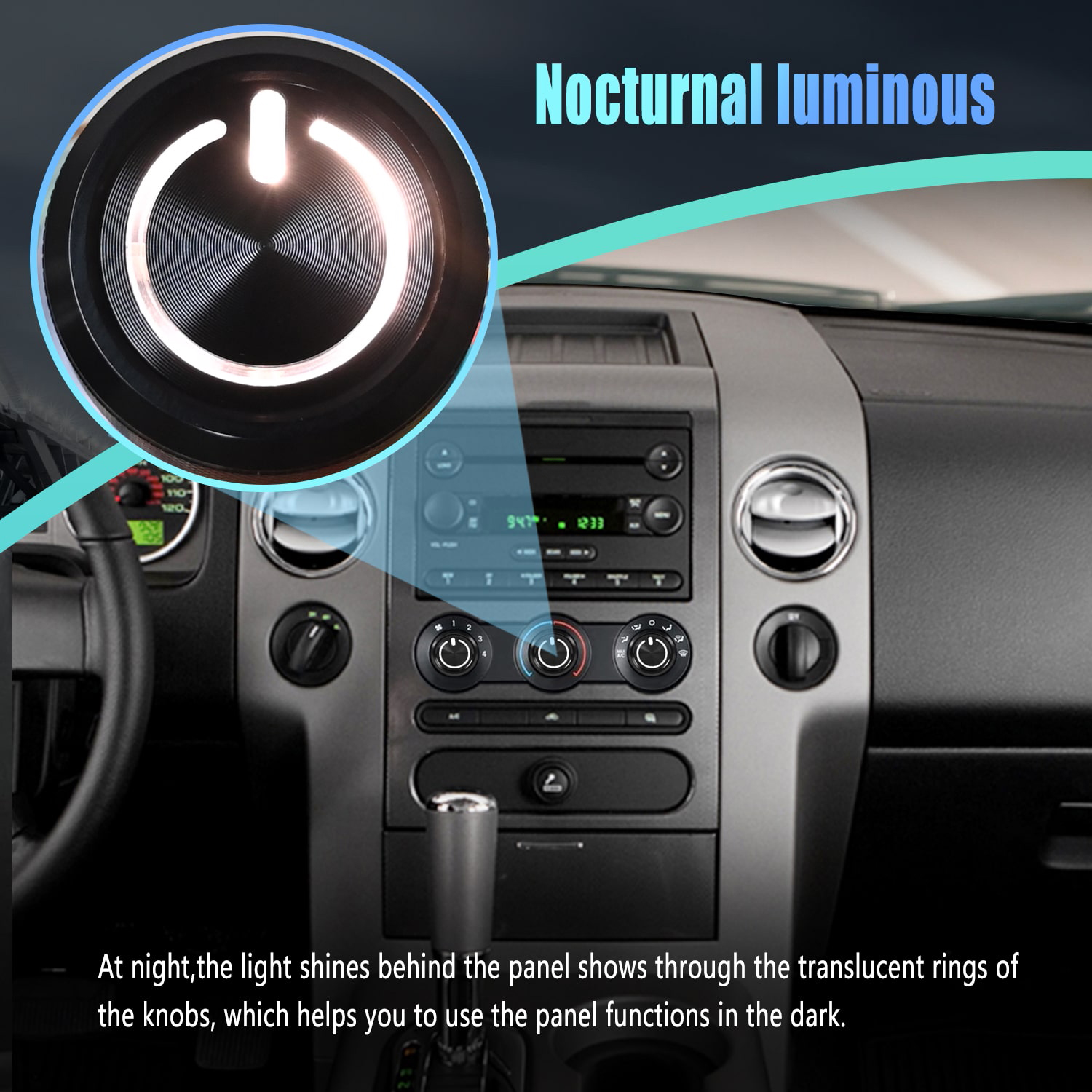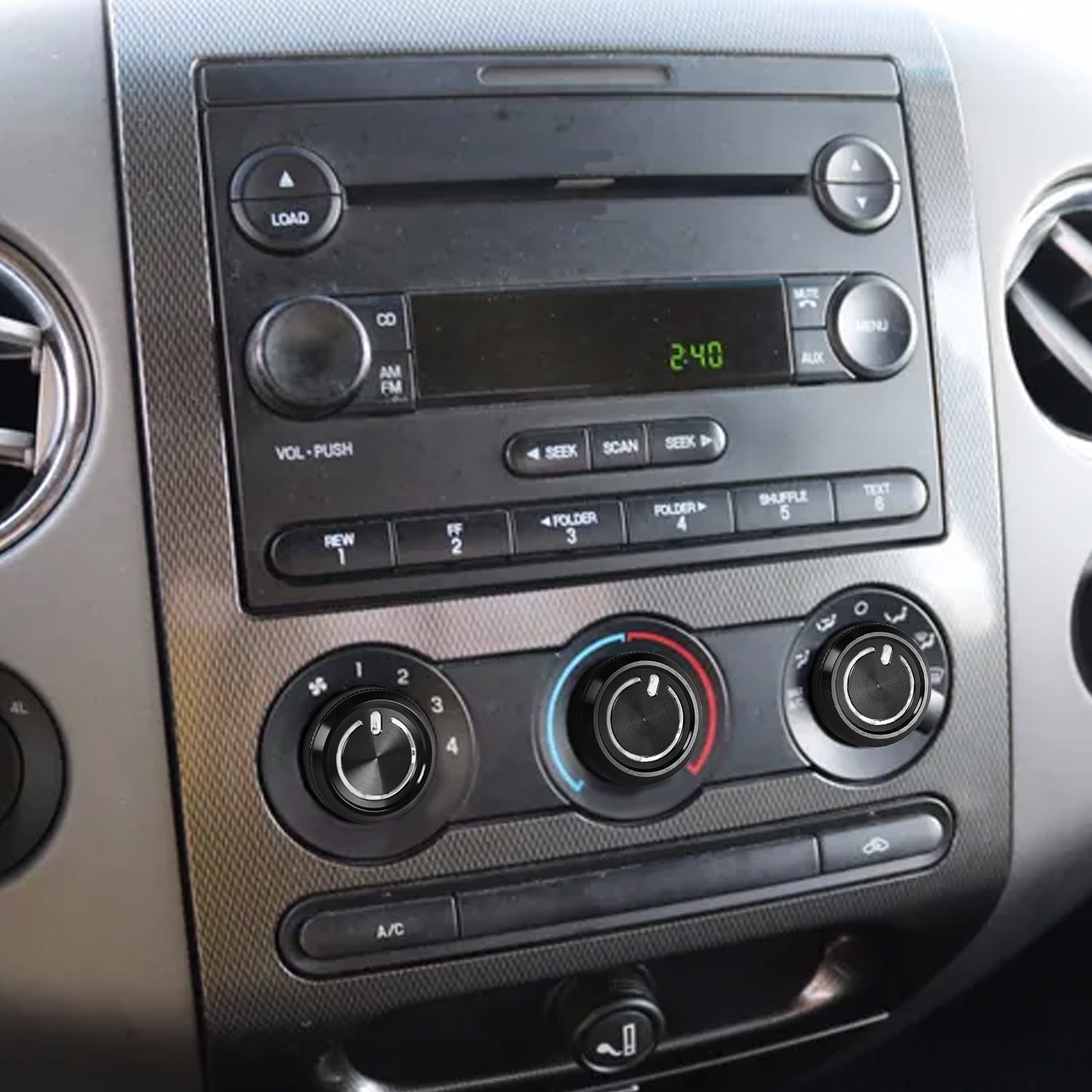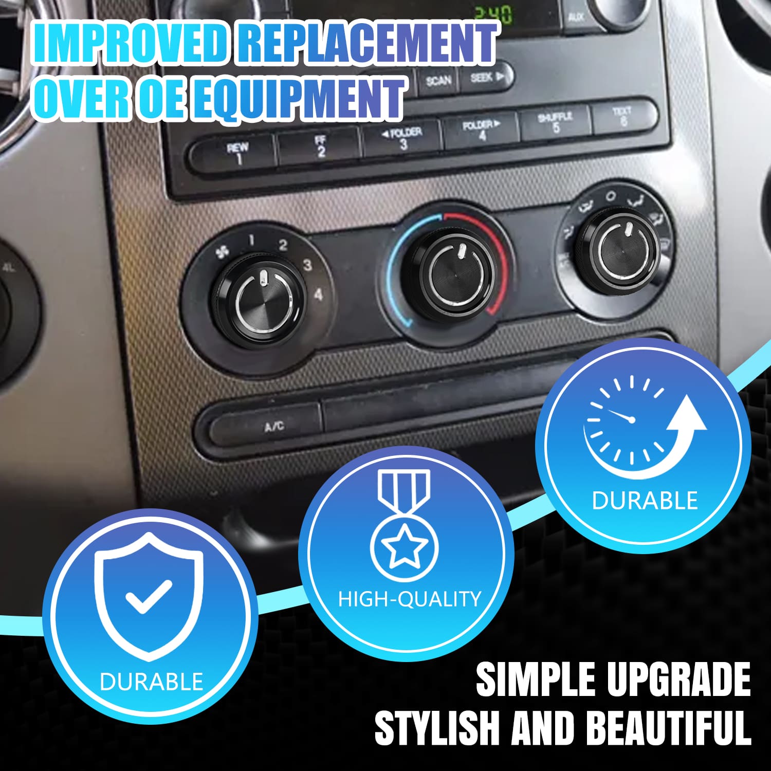 Product Description: - For Ford F150 models 2004-2008, air conditioning temperature control knob and buttons. - Avoid cheap products with design flaws! They'll need replacing soon! - Meticulously crafted for seamless integration with your vehicle's interior, delivering factory-level appearance and tactile feel. - The knob body features a 6061-T6 aluminum alloy housing, - Precision CNC machined with a durable anodized surface finish. - Ergonomic design. Why choose us: Climate control knobs often show wear or cracks from frequent use. Located below the center radio on the dashboard, this part installs easily without tools. Product Specifications: -- Condition: 100% Brand New -- Material: Aluminum Alloy + Polycarbonate -- Surface Finish: Anodized -- Manufacturing Process: CNC Precision Machining -- Color: Black OEM Part Number: For Ford F150: Part Number 3F2Z-18519-AA Installation Tip: After removing the old part, simply push the new part into place. We do not provide any programming, installation instructions, or unlock codes. Please consult your local dealer, a professional technician, or refer to your owner's manual. Package Contents: 3* Air Conditioning Temperature Control Knob Buttons