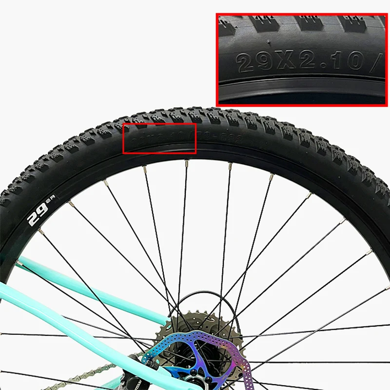 Example: The following tire is 29x2.10 tire. 29 refers to the diameter of the tire, and 2.10 refers to the width of the steel ring, so the selected tire pad is 29 inches*20mm wide.