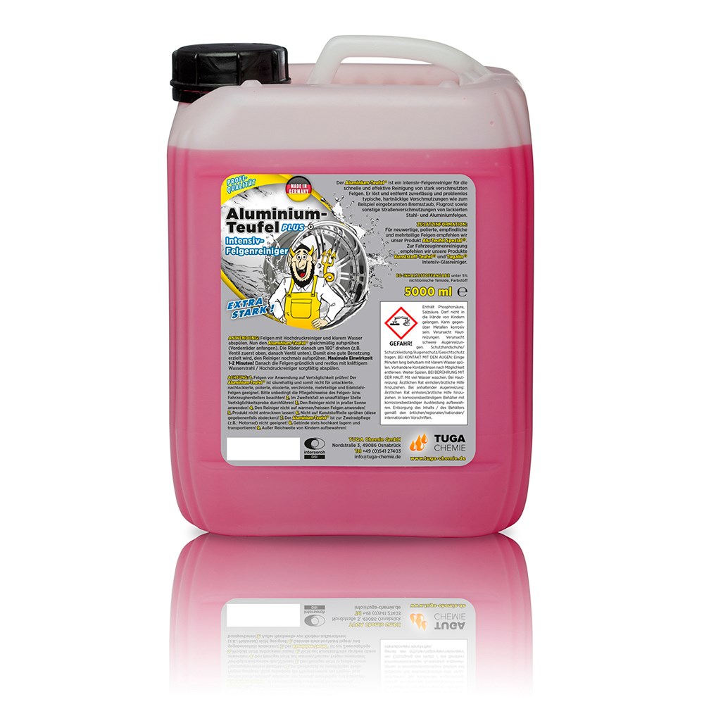 Der Aluminium-Teufel® ist ein extrem kraftvoller Felgenreiniger mit Langzeitwirkung. Löst und entfernt problemlos typische Felgenverschmutzungen, wie z.B. stark, eventuell über Jahre hinweg eingebrannten Bremsstaub, Flugrost sowie sonstige Straßenverschmutzungen. Die Reinigung erfolgt absolut selbsttätig: aufsprühen, kurz einwirken lassen und mit kräftigem Wasserstrahl abspülen. Hinterlässt auf den gereinigten Felgen eine molekulare Schutzschicht (Abperleffekt). Nur für lackierte Stahl- und Aluminiumfelgen. DAS ORIGINAL, bewährt und seit über 30 Jahren am Markt!