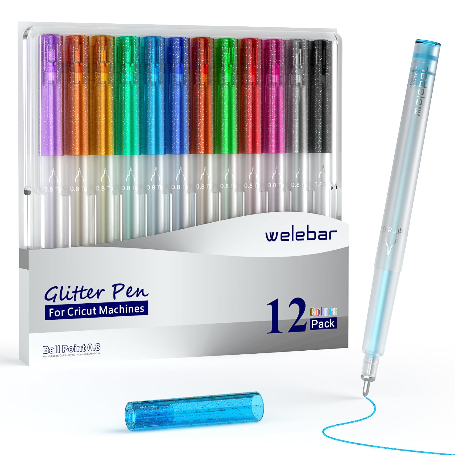 Lot de 12 stylos à bille à encre gel pailletée pour Cricut Maker 3/Maker 4/Explore 3/Explore 4/Air 2, pointe 0,8 pour écrire, dessiner, invitations