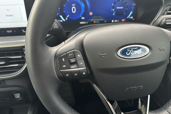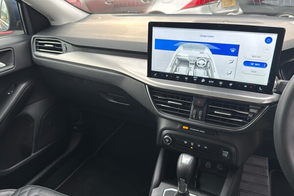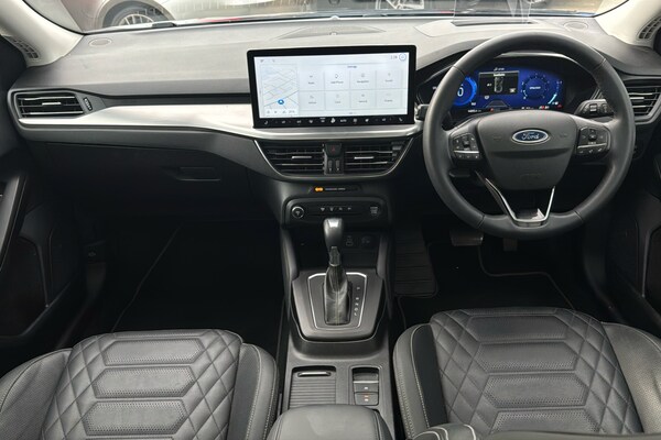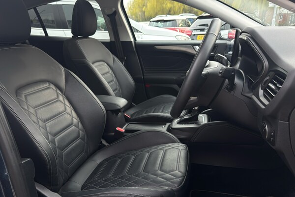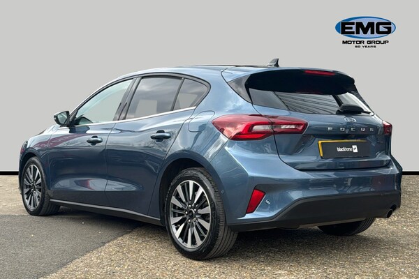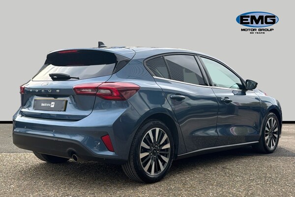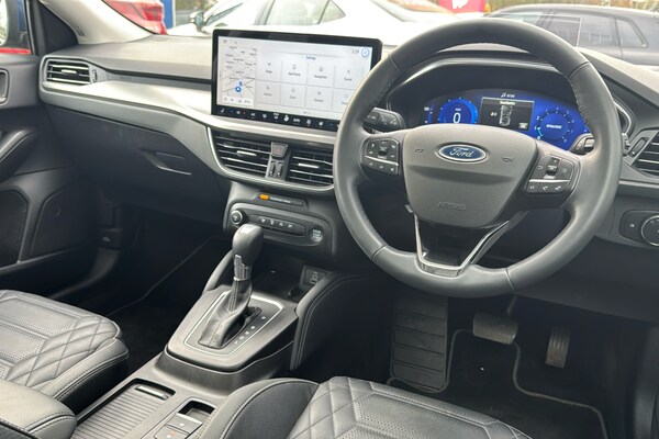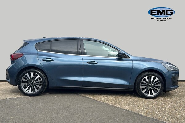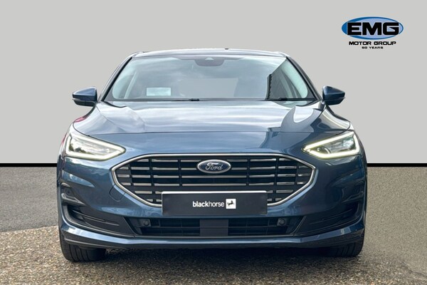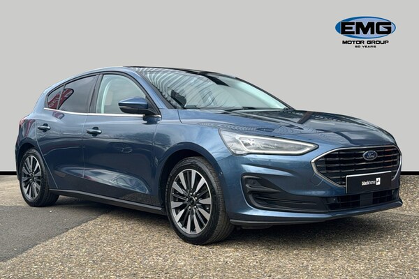 EMG Haverhill is pleased to offer you this stunning Ford Focus MHEV 1.0 Titanium X Automatic 5-door finished in Chrome Blue premium metallic paint with Ebony leather interior. This well-presented hatchback has covered 14895 miles and will be Ford serviced before sale plus the new keeper will benefit from the balance of Ford 3-yr warranty until January 2027 – assuring complete peace of mind! Powered by a 1.0 turbo petrol engine that produces 155 horsepower and is Euro 6 compliant with Mild Hybrid technology this model offers an efficient and responsive driving experience. The Titanium X trim ensures a premium feel plus enhanced by factory options worth over £4k that includes Electric Panoramic Roof Dynamic LED Anti-Glare Headlamps Driver Assistance BLIS Parking Pack & Heads Up – building value & making it an even more compelling choice against standard cars in the market! The performance of this Focus is a key highlight with an impressive 0-62mph acceleration time of just 8.4 seconds demonstrating its dynamic capabilities. These features collectively indicate this vehicle offers a superior driving experience compared to other vehicles in its class combining advanced technology comfort and performance! This Euro 6 compliant model boasts a 1.0L Petrol Hybrid engine offering an efficient and responsive driving experience. The Titanium X trim level ensures a premium feel enhanced by notable features such as an openable panoramic roof providing an airy cabin atmosphere. Driving is made safer and more convenient with Dynamic Matrix LED headlights including glare free lighting and automatic on-off functionality alongside a helpful Head Up Display and Blind Spot Information System. The performance of this Focus is a key highlight with an impressive 0-62mph acceleration time of just 8.4 seconds demonstrating its dynamic capabilities. These features collectively indicate that this Ford Focus T Titanium X offers a superior driving experience compared to many other vehicles in its class combining advanced technology comfort and spirited performance.