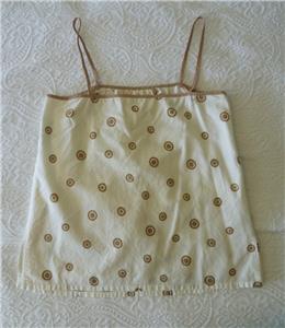 Cami style top with spaghetti straps, ruched along the front, side slits.