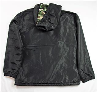 - Attached Camo Fleece Lined Hood with Rip Cord Adjustment