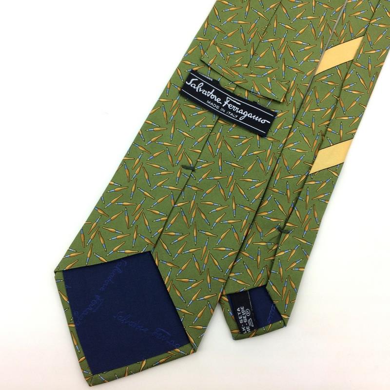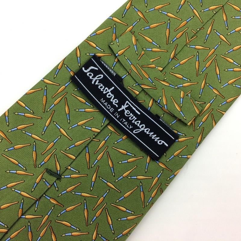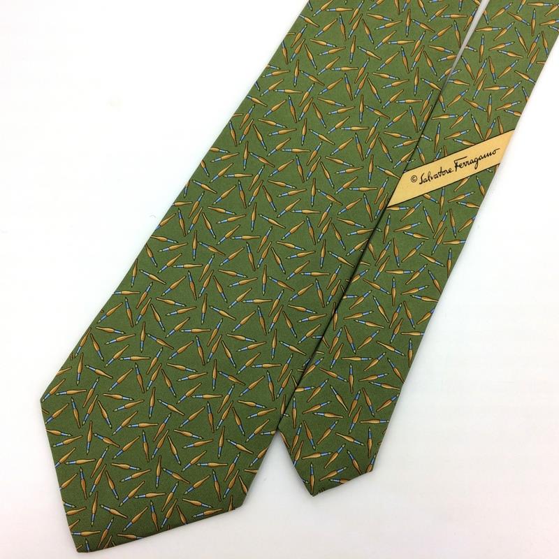 Salvatore Ferragamo Tie Italy Fountain Pen Green Gold Necktie Luxury Novelty L2