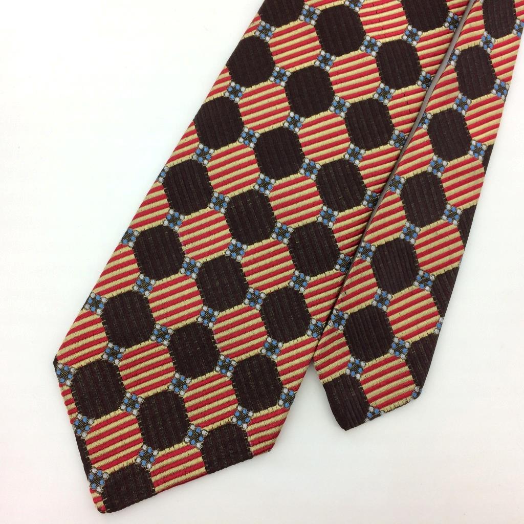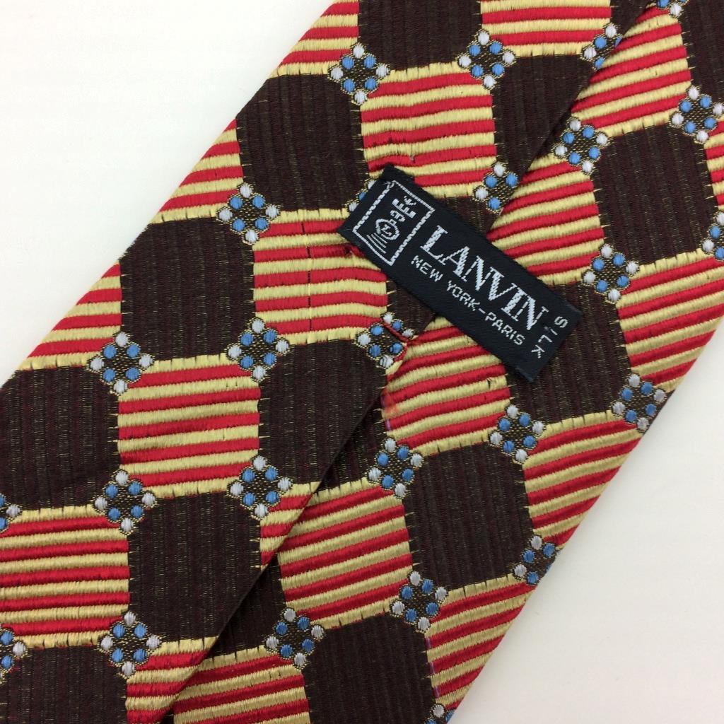 Lanvin New York Paris Tie Checkerboard Stripe Brown Red Gold Necktie Silk L3 Vtg