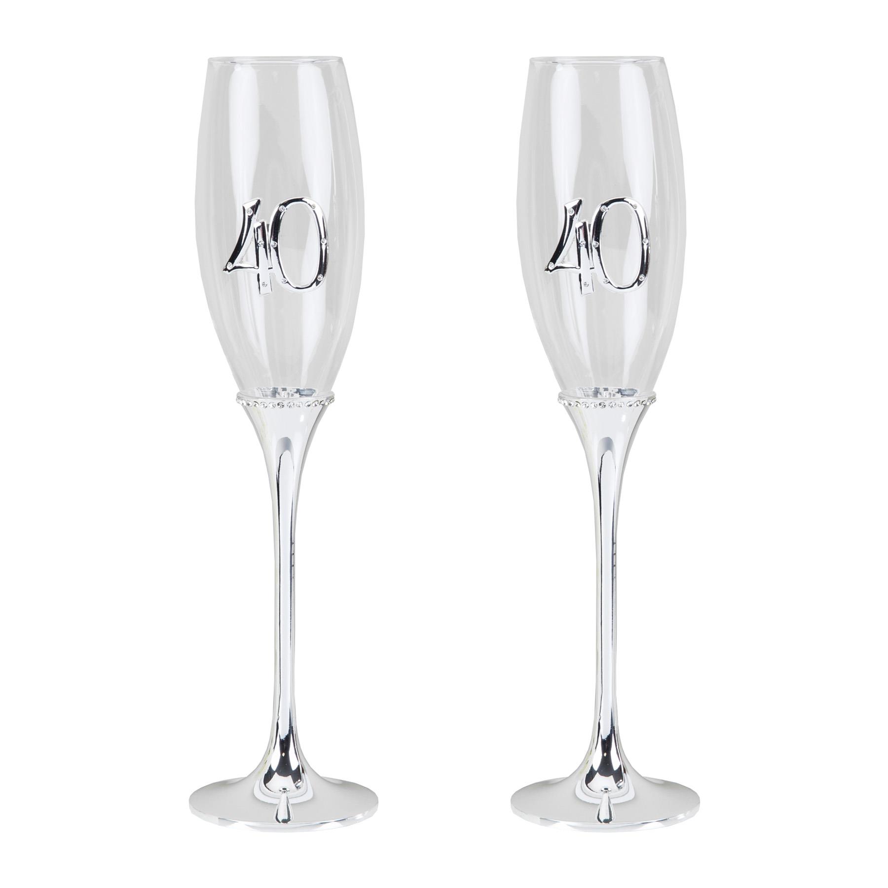 Anniversary Champagne Flutes with Silver Stem Set of 2