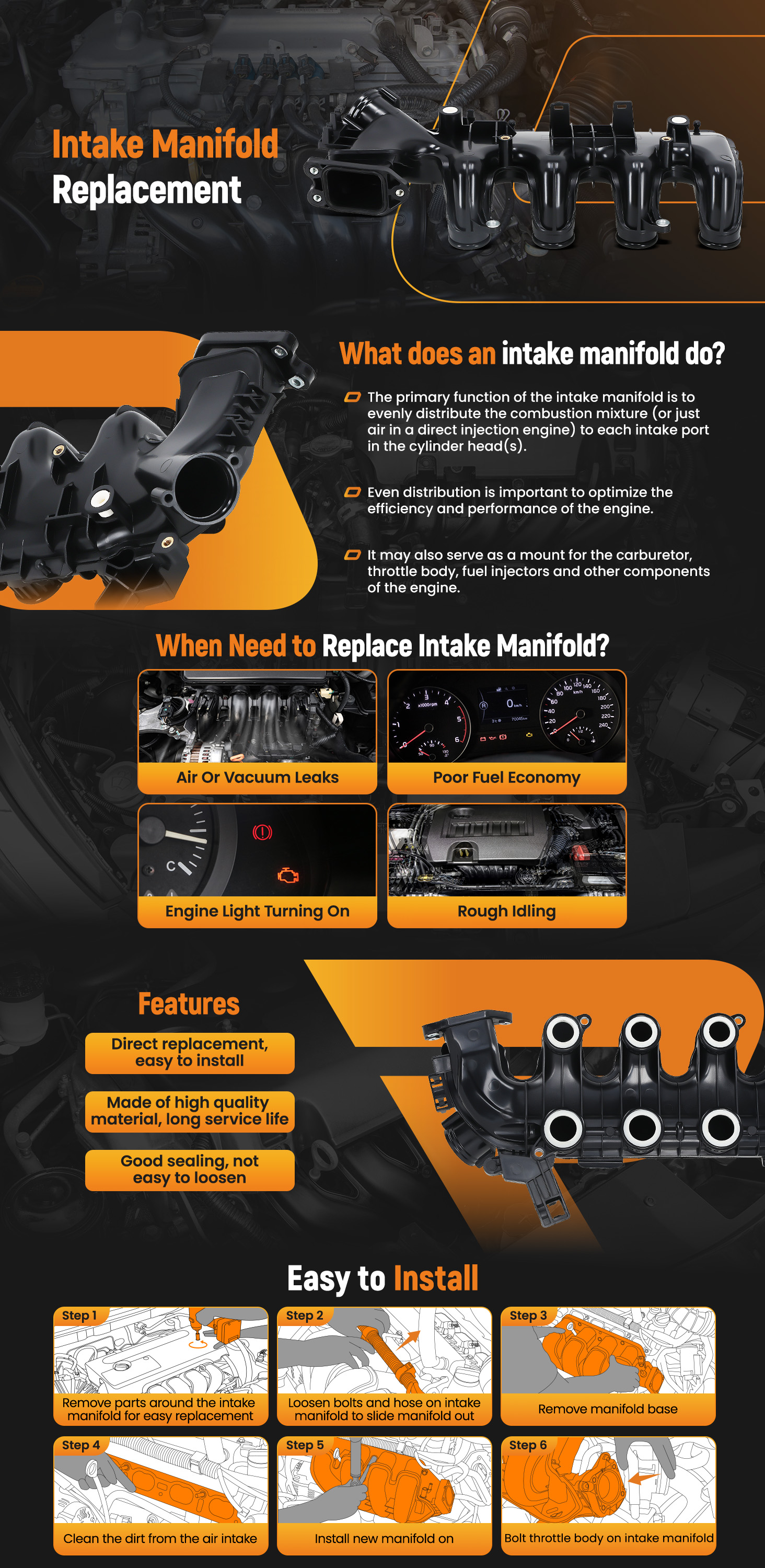 Dank seiner präzisen Konstruktion garantiert der Ansaugkrümmer eine perfekte Passform und ist einfach zu installieren, wodurch die Gesamtleistung Ihres Fahrzeugs verbessert wird.