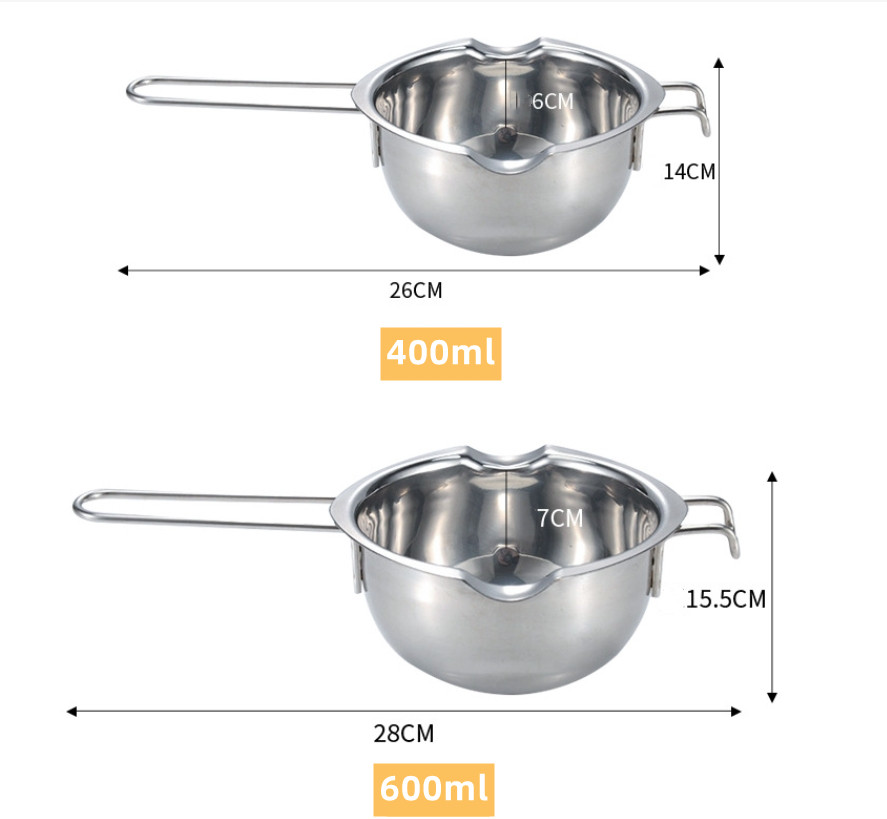 The size of the melting pot is 400ml-26*14*6cm/600ml-28*15.5*7cm,easy and convenient to carry when not in use.
