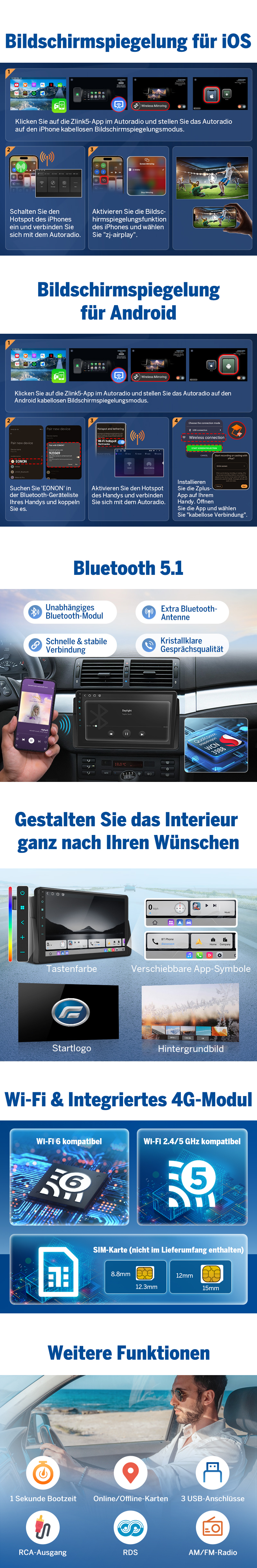 β Nur für mobiles Internet, Online-Navigation & OTA. Offline-Funktionen laufen ohne SIM. Unterstützt deutsche LTE-Bänder (B1/B3/B7/B20/B28).