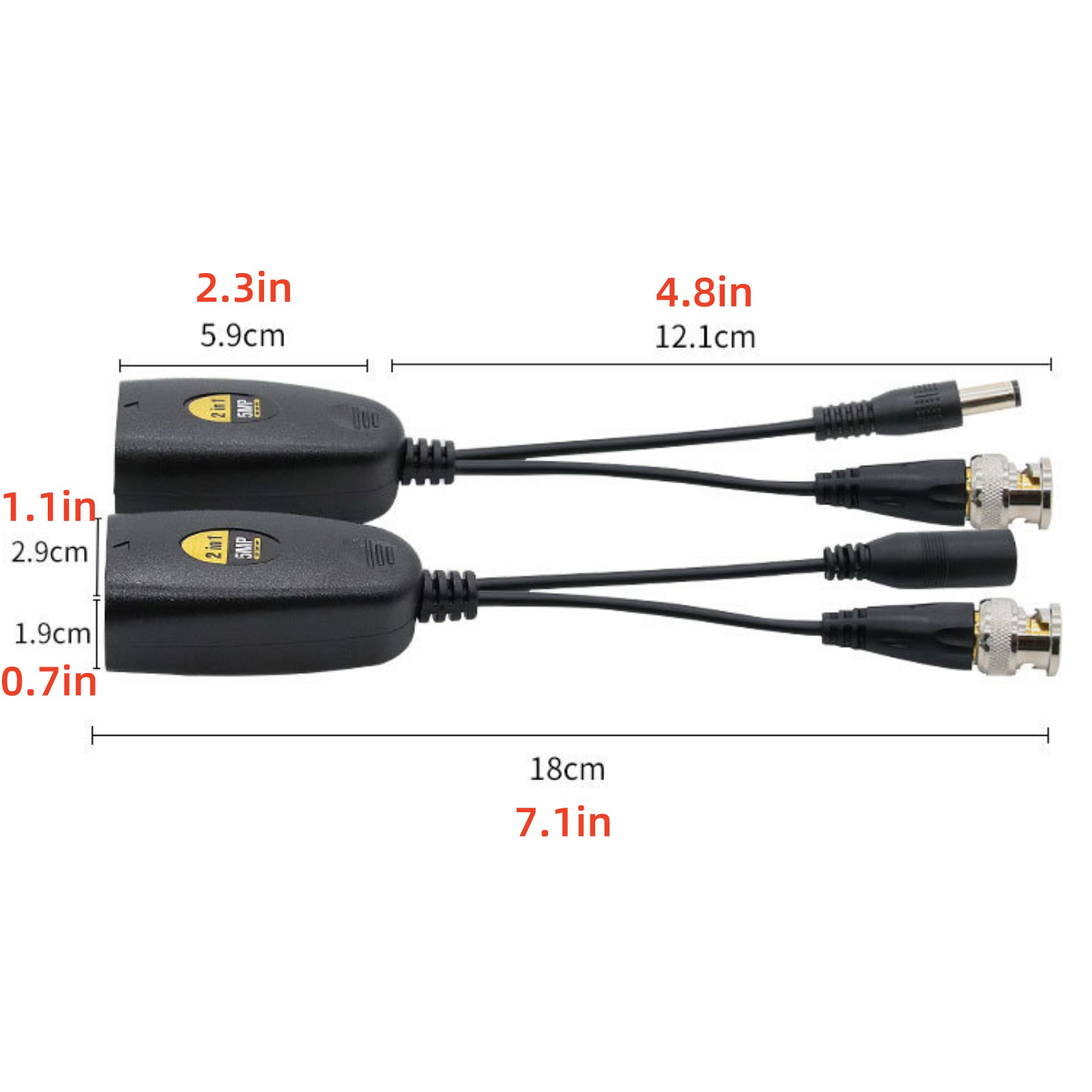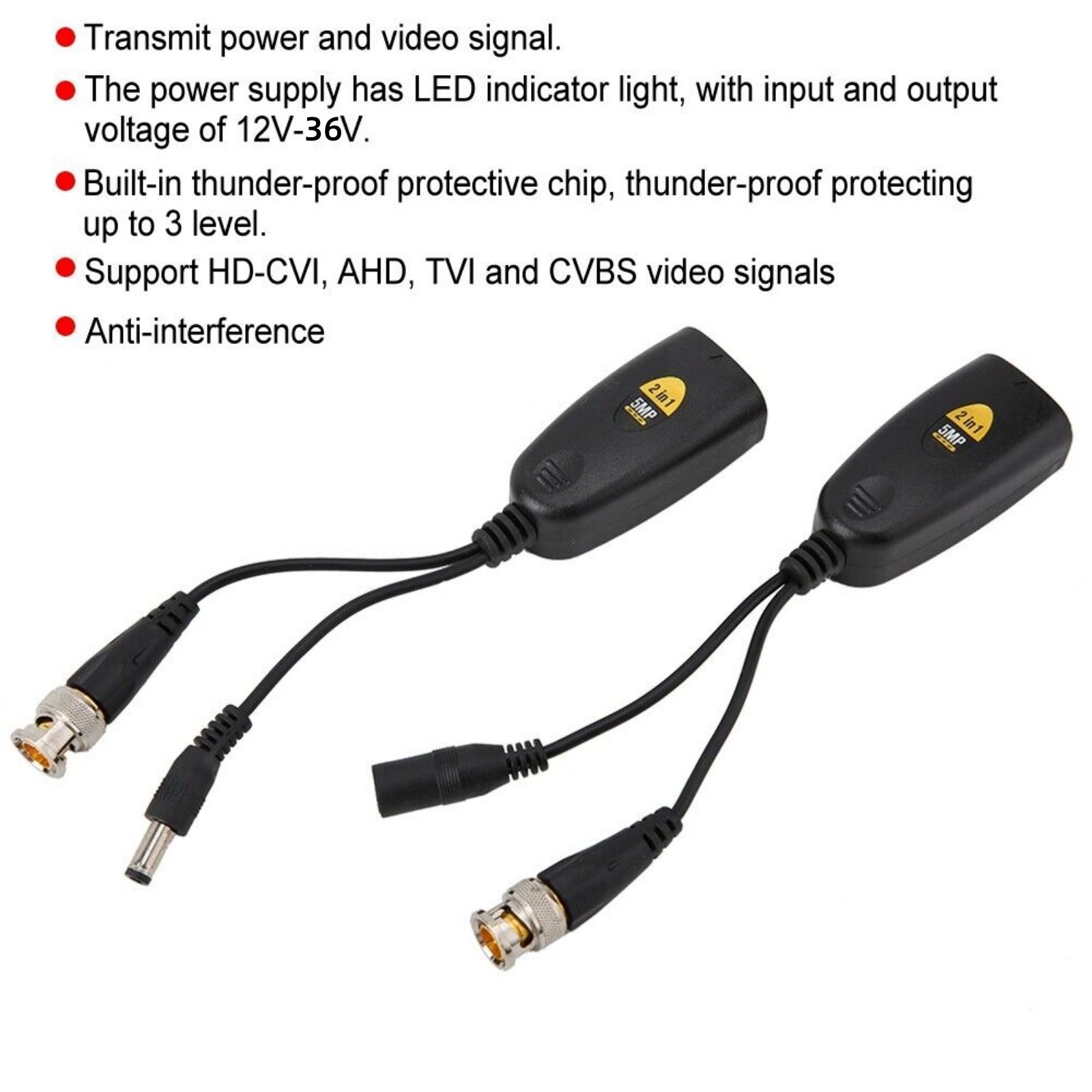 2PCS/Set Anti-Interference BNC To POE Adapter Balun Connector For Surveillance