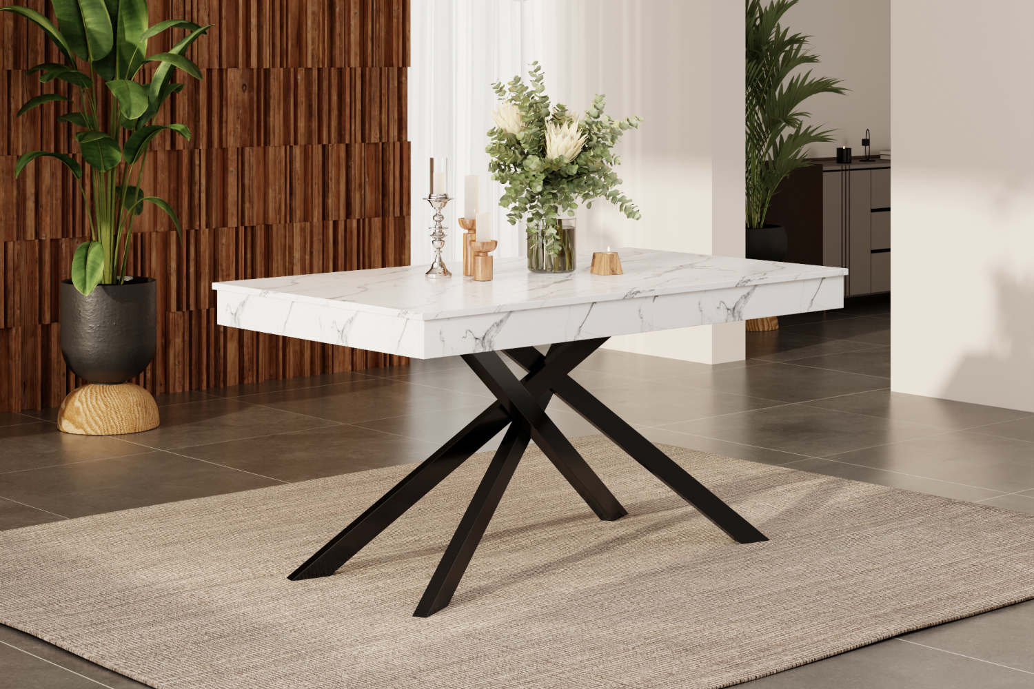 Ausziehbarer Esstisch, 140/180*80 cm, geeignet für 6-8 Personen, rechte Form, verdickte Tischplatte, Metallbeine,einfacher Stil,Tisch für Esszimmer, Küche, Wohnzimmer, Weiß