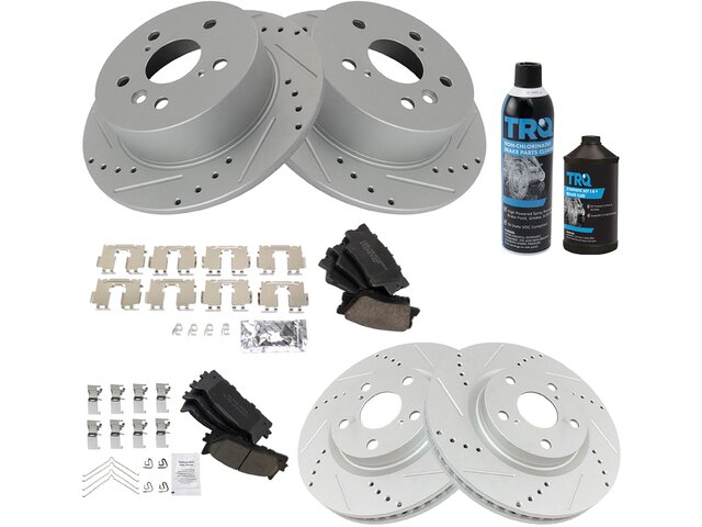 (1) Front Ceramic Brake Pad Set; (1) Rear Ceramic Brake Pad Set; (1) Brake Cleaner & Fluid Kit; (1) Front Premium G-Coated Performance Brake Rotor Set; (1) Rear Premium G-Coated Performance Brake Rotor Set